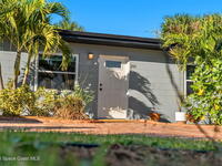 Tucked just one block from the ocean and 2 blocks from Satellite high campus, this fully renovated triplex offers a rare blend of coastal lifestyle, privacy, and versatility. Set on a lushly landscaped lot, the property feels more like a private micro-estate than a traditional multifamily, with mature native plants and fruit-bearing trees creating a peaceful, shaded retreat. The property includes 3 updated residences: two 2-bedroom/1-bath units and one 1-bedroom/1-bath unit, each with its own fully fenced yard and private outdoor space. Extensive capital renovations make this a turnkey opportunity, including new electrical, new PVC plumbing with no cast iron under the slab to the street, hurricane impact rated impact windows and doors, paver driveway, and 2022 A/C units throughout. A rear carport has been converted into three private storage units. With significant capital upgrades this is a rare beachside triplex suited for investors, owner-occupants, or multigenerational living.
