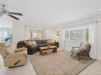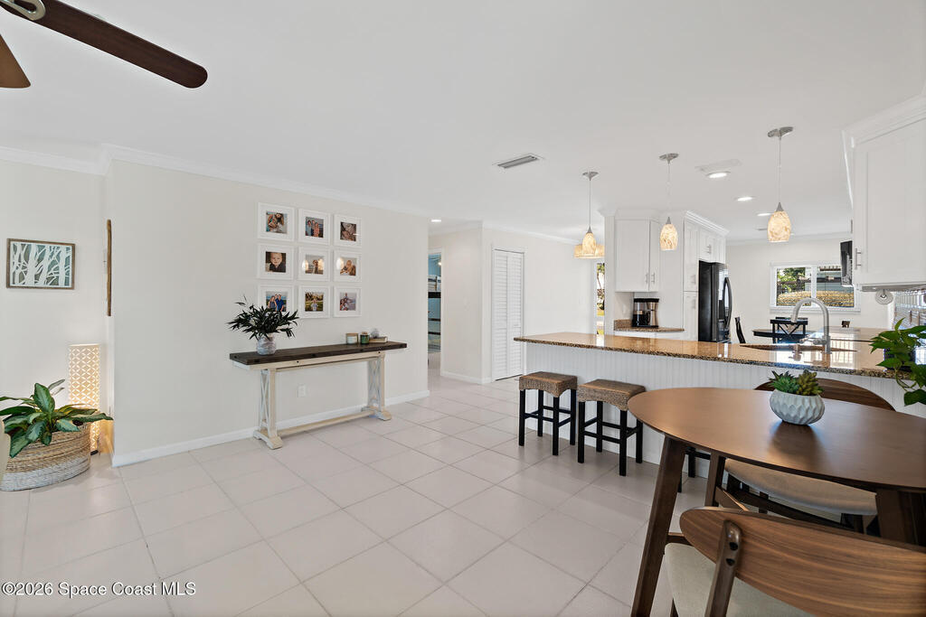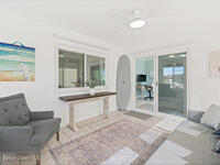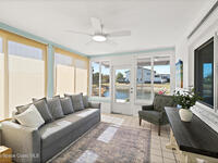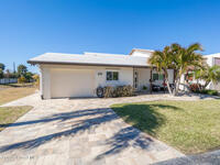 Welcome to beach living at its finest with this beautiful end-unit 2-bed, 2-bath + flex space townhome. This single-level gem is bathed in natural light, thanks to abundant impact windows (2020), offering an inviting atmosphere that feels more like a standalone home. Inside, discover 2 spacious bedrooms with ample storage, a versatile flex space perfect for an office or guest room, and an enclosed Florida room with new 2024 ceiling and fan that invites you to unwind and watch birds by the pond. The eat-in kitchen, light and bright with elegant finishes. Skyline Estates is pet friendly and less a 5 min. walk to the beach. Recent upgrades include new AC and hot water heater (2023), air handler (2024), ductwork (2025), tile roof (2000), flat roof (2021), and storm shutters, front door, and garage door (2022). The spacious 1-car garage and paver driveway/patio (2024) offer plenty of parking. Move-in ready, this turnkey home is ideal for anyone seeking a vibrant life on the beach
