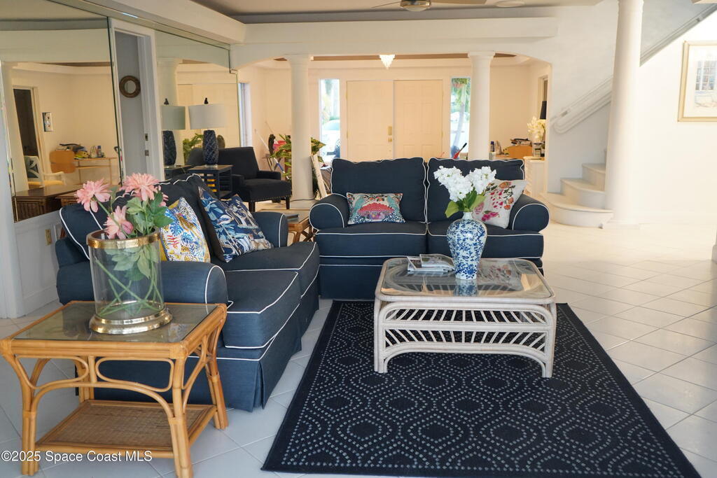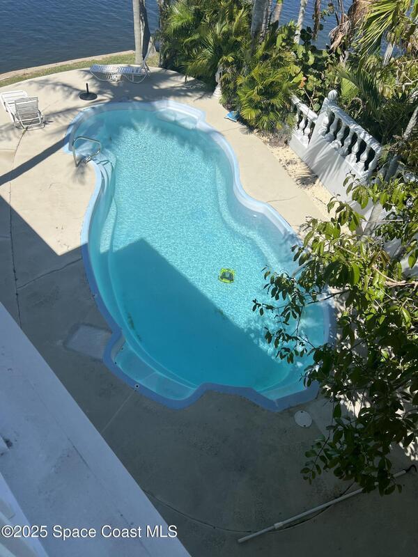 Welcome to the prime spot on beautiful Lake Shephard, a true hidden gem in Satellite Beach. This stunning waterfront home located on the entrance to the lake offers views of the Grand Canal, Lake Shephard and stunning sunset views. Relax in the rocking chairs and see the sky explode into pink, blue and yellow sunsets. This property has so many areas to entertain, whether poolside, the upper decks, or the gazebo, this 3 BR/4BA home offers so many possibilities. Three bedrooms are all located on ground floor, each with their own bathroom. The den or media room on the ground floor is a bonus room and could be a game room, man cave or children's playroom. 2nd story is one open floorplan with a bar and small kitchenette. The large seating area offers spectacular panoramic views and wrap around balconies, perfect for entertaining. The dock was replaced with new composite decking and existing boat lift. Located in a cul de sac and walled in on both sides. Please note there is no garage.