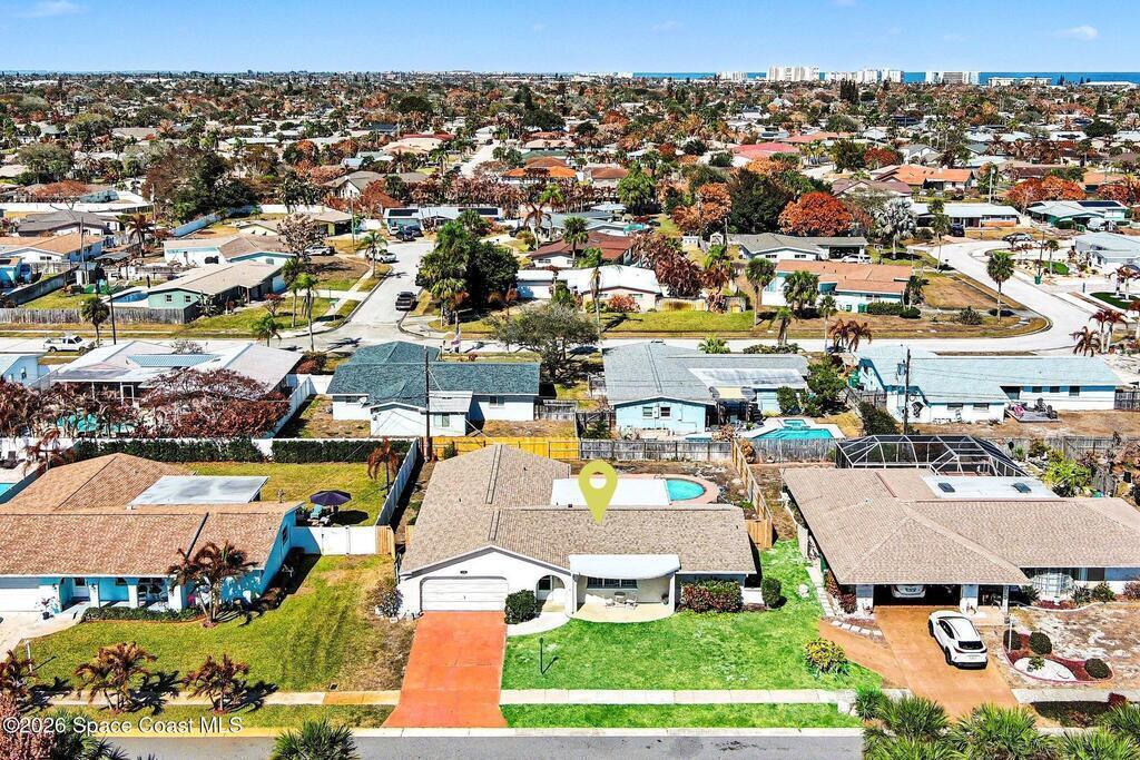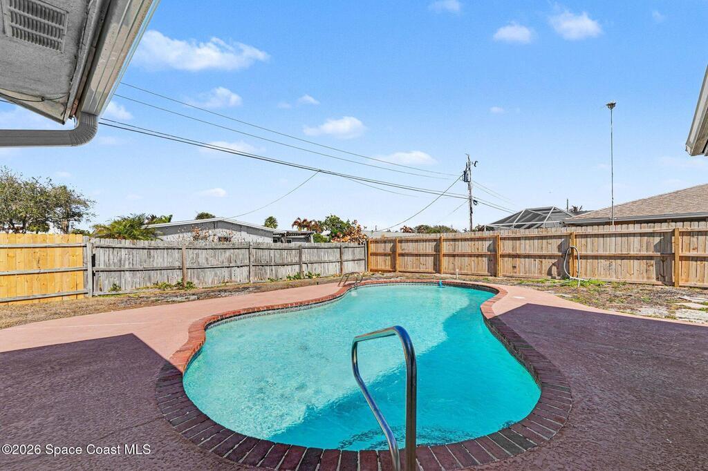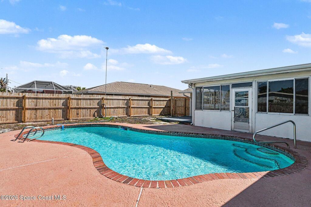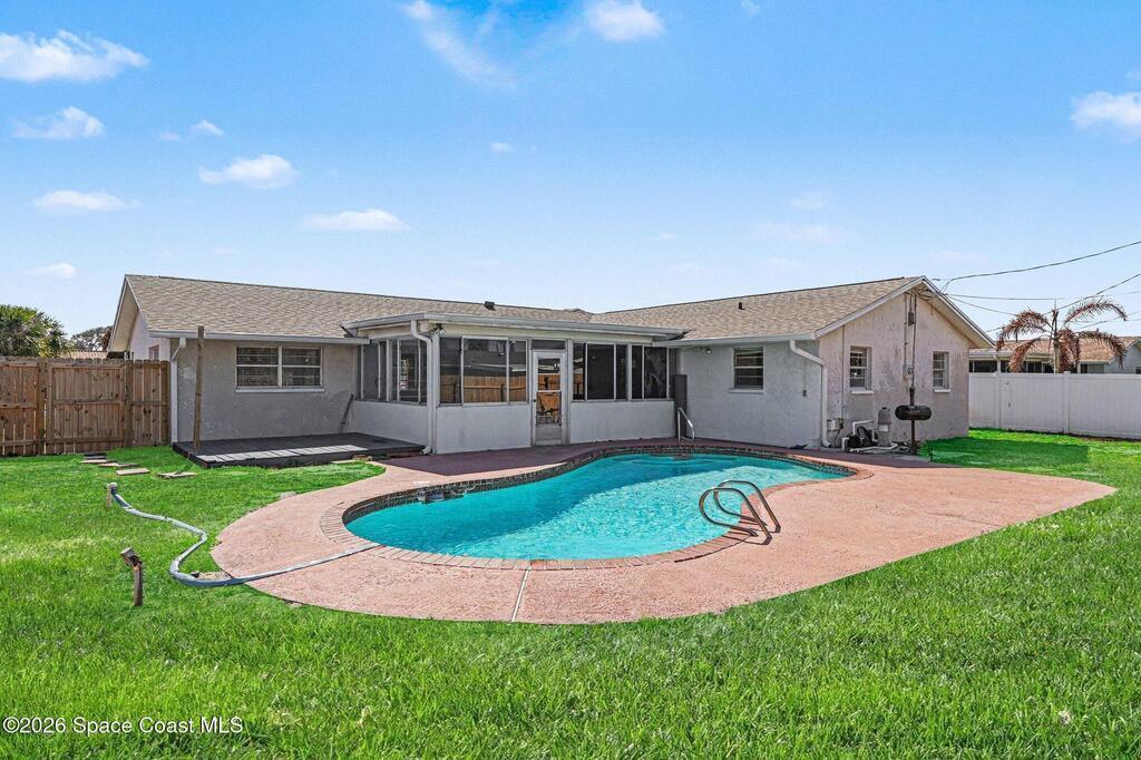 SPREAD OUT in this four-bedroom, two full bathrooms, two car garage, concrete block, pool home located in one of the most desirable neighborhoods in Satellite Beach.. and BTW, NO HOA! This classic ranch style, open, split bedroom plan is looking for a new owner and a little TLC. Step into the large living dining great room with sliders framing a large, covered patio overlooking the freeform pool perfect for family fun or entertaining! A separate family room off the kitchen with breakfast bar and nook area. Large, fenced backyard providing a multitude of relaxing days in the Florida sun. New roof in 2023, HVAC in 2021 and Water Heater in 2018. Located close to everything! Pristine beaches, Indian river access, great parks, A* rated schools, shopping, restaurants, DRS community center and the causeway. We both know this one won't last long.
