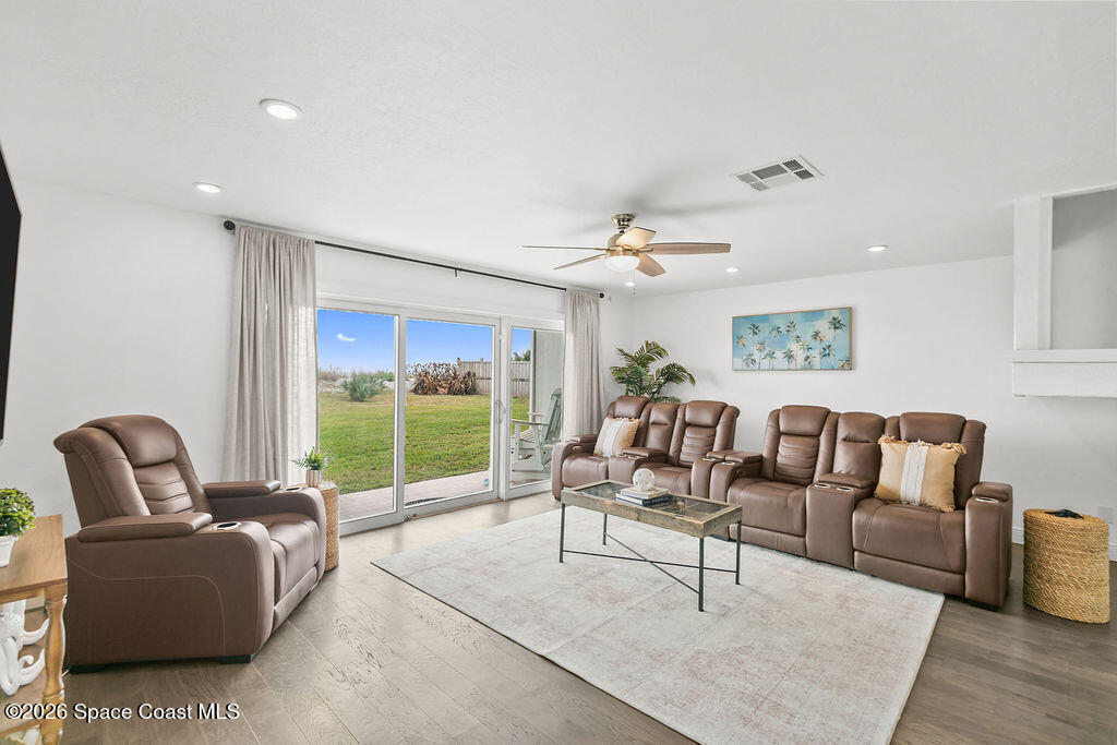 Experience true beachfront living in this three-story direct oceanfront townhouse in Satellite Beach. With panoramic Atlantic views, private beach access, and flexible living space, this home offers the perfect blend of comfort and coastal lifestyle.The first floor features an open floor plan with a large kitchen and expansive living and dining areas. Triple sliding glass doors flood the home with natural light and open directly to a patio and grassy lawn overlooking the ocean. The second floor includes three bedrooms and two bathrooms. The primary suite offers its own private oceanfront balcony with triple sliders, creating a peaceful retreat with breathtaking sunrise views and soothing sea breezes. On the third level, a bright loft with multiple ocean-facing windows showcases elevated water views. Complete with a small closet, this versatile space can easily function as a fourth bedroom, home office, media room, or rec room.