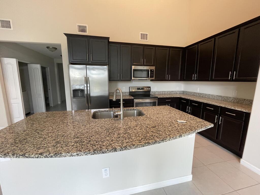 Gorgeous lakefront townhome located in the Gated Montecito community. Spacious open concept design with soaring ceilings in the main living areas all overlooking the serene lake view. Contemporary charcoal cabinetry is complimented by granite counter tops and stainless appliances. Enjoy the convenience of a downstairs Primary Suite with large walk-in closet Upstairs, 2 bedrooms share a bath and a great loft area, also with a lake view. Community amenities include a community pool, clubhouse, fitness center and playground.