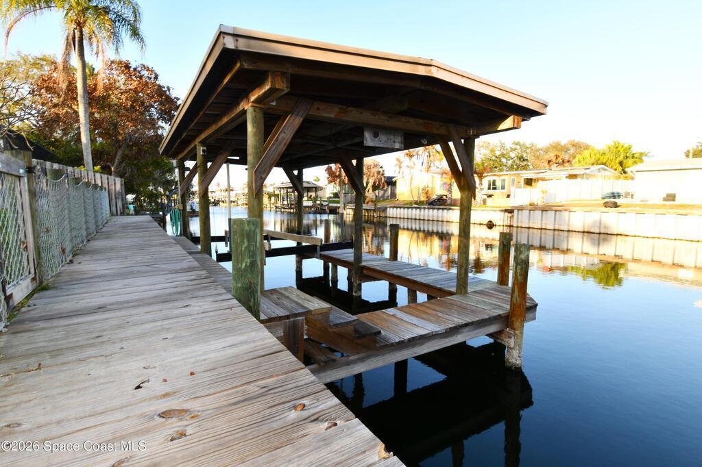 Step into this upgraded Waterway States at Satellite Beach, a waterfront haven where comfort meets a serene coastal lifestyle. Spanning 1768sqf, this open concept invites you in with stunning panoramic views. The chef-inspired kitchen. 4 spacious bedrooms, 2 fully upgraded bathrooms, beautiful tile floors, ensure ample space for relaxation and entertainment. Experience the best of Florida living directly from your backyard, where a private navigation canal offers immediate access for kayaking and fishing right outside your door with a brand new covered boat lift for up to 19' boat, Whether you are unwinding in the beautiful, enclosed Florida room overlooking the water or hosting friends, this estate is the perfect backdrop for creating lifelong memories.