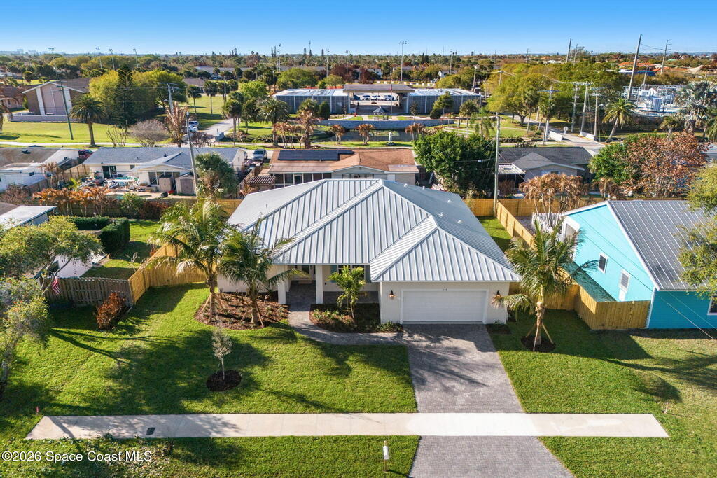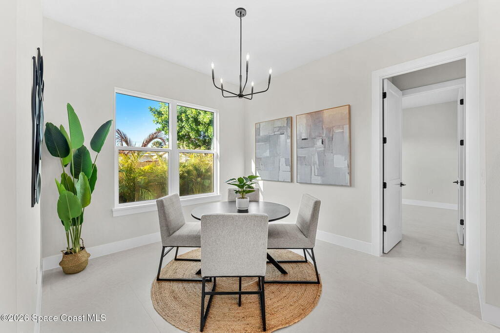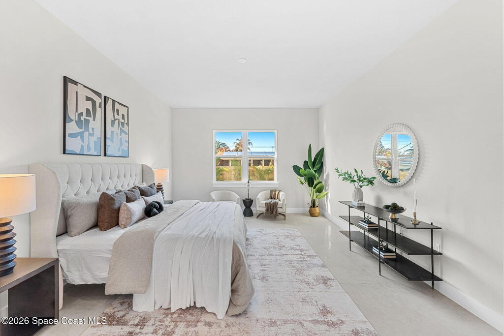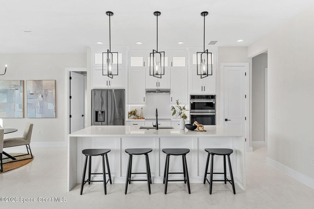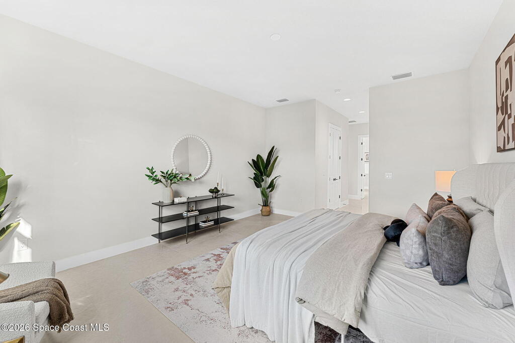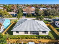 Striking brand-new construction offering 4 beds, 3 baths & 2, 361 sq ft under air (3, 230 total) w/ soaring 10' ceilings rising to 11'4'' in the dramatic great room. A smart split floor plan including a hallway door to separate the guest bedrooms from the living area. Designer finishes include upgraded porcelain tile throughout, refined trim, soft-close dovetail wood cabinetry, quartz countertops, Kohler fixtures & a waterfall island paired w/ sleek black SS appliances. The spacious primary bath features a large frameless glass shower & private water closet. Plus a full guest suite w/ en-suite bath. Built for durability & efficiency w/ CB construction, impact-rated windows & doors, insulated double-pane glass, R-38 attic insulation & a standing seam metal roof w/ peel-&-stick secondary water barrier. A fully fenced .22-acre lot w/ lush landscaping, St. Augustine sod & irrigation offers room for boat/RV parking. Large 2-car garage w/ opener & keypad. No HOA. Near shopping, dining & parks.