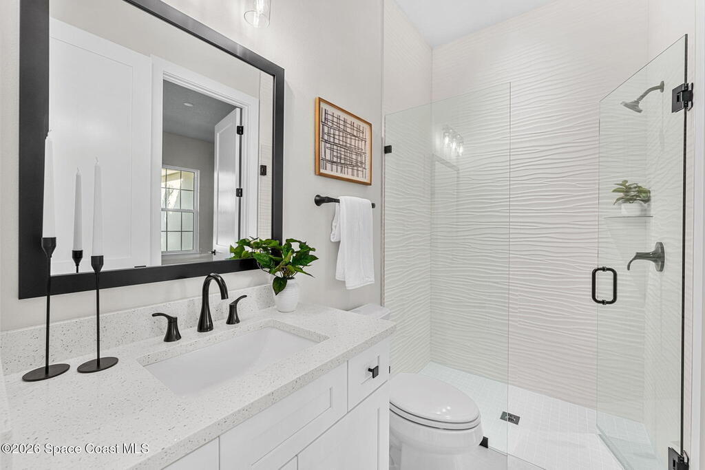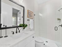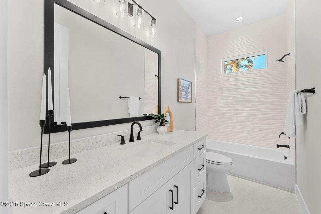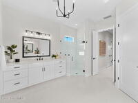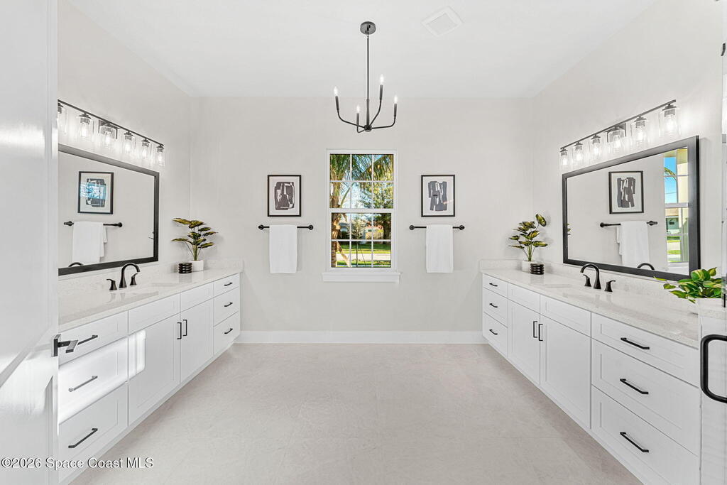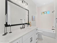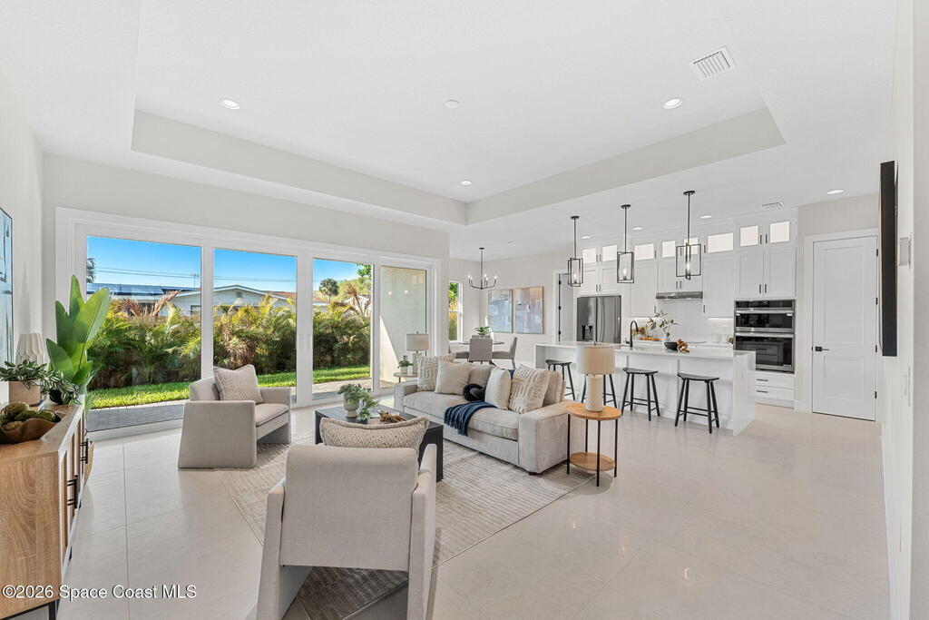 Striking brand-new construction offering 4 beds, 3 baths & 2, 361 sq ft under air (3, 230 total) w/ soaring 10' ceilings rising to 11'4'' in the dramatic great room. A smart split floor plan including a hallway door to separate the guest bedrooms from the living area. Designer finishes include upgraded porcelain tile throughout, refined trim, soft-close dovetail wood cabinetry, quartz countertops, Kohler fixtures & a waterfall island paired w/ sleek black SS appliances. The spacious primary bath features a large frameless glass shower & private water closet. Plus a full guest suite w/ en-suite bath. Built for durability & efficiency w/ CB construction, impact-rated windows & doors, insulated double-pane glass, R-38 attic insulation & a standing seam metal roof w/ peel-&-stick secondary water barrier. A fully fenced .22-acre lot w/ lush landscaping, St. Augustine sod & irrigation offers room for boat/RV parking. Large 2-car garage w/ opener & keypad. No HOA. Near shopping, dining & parks.