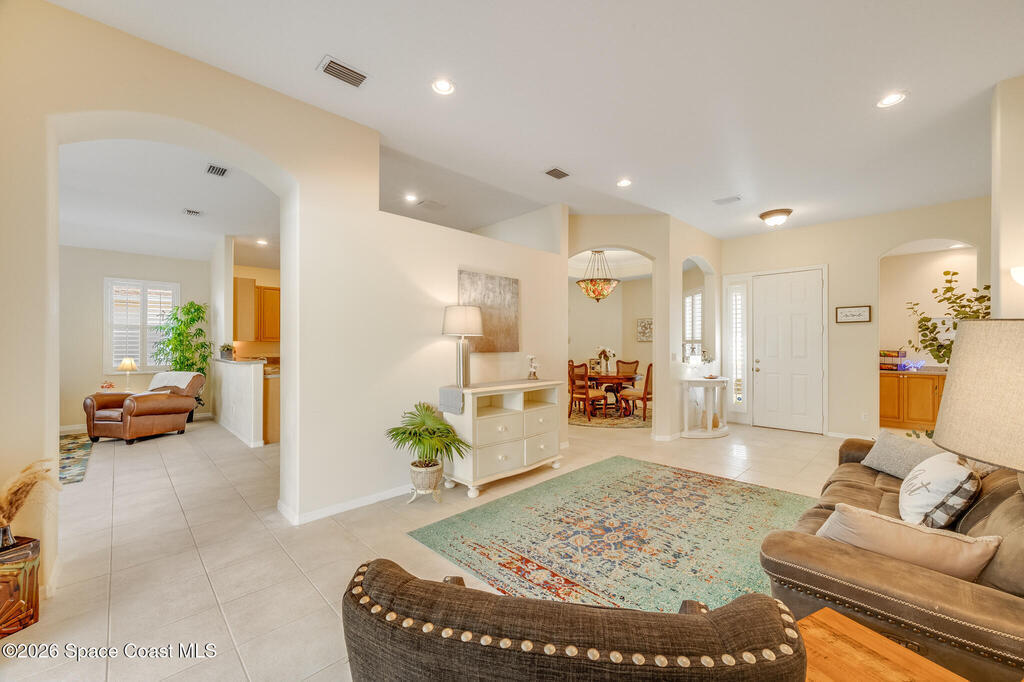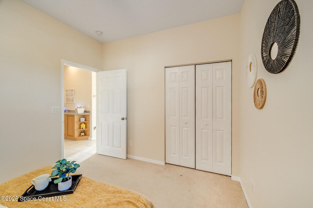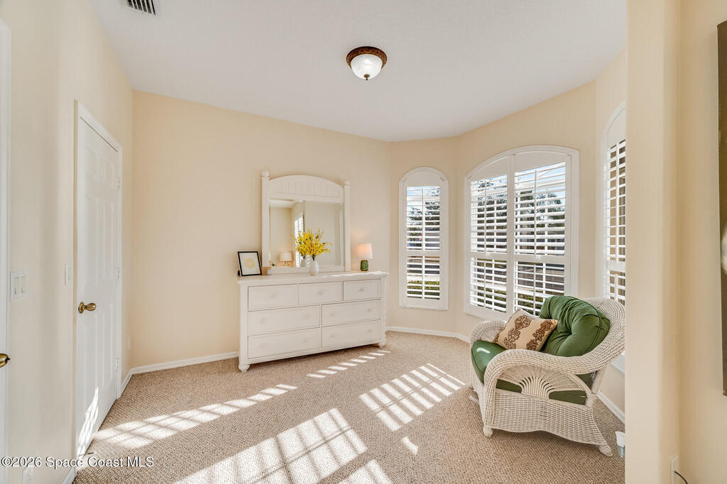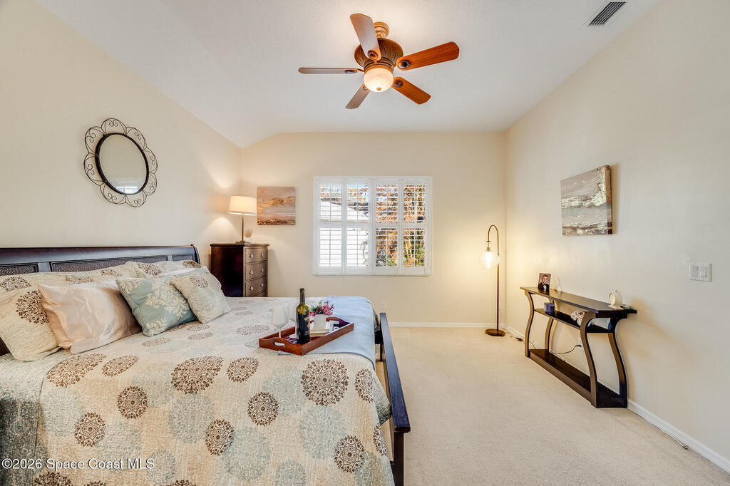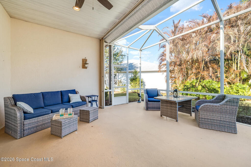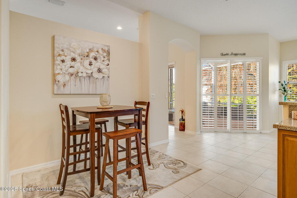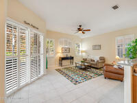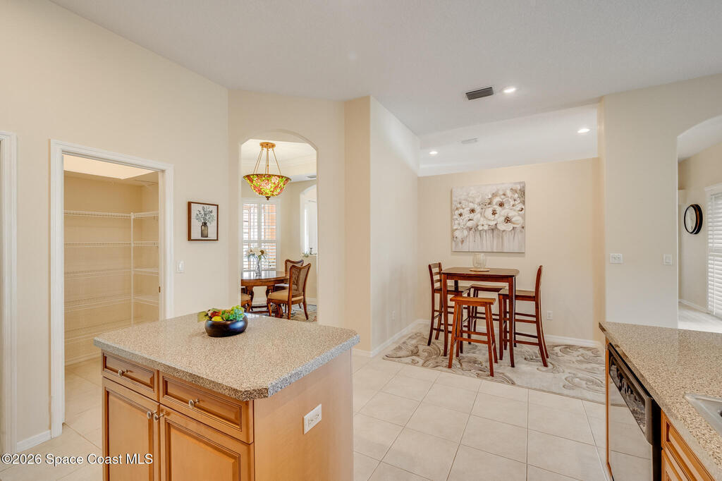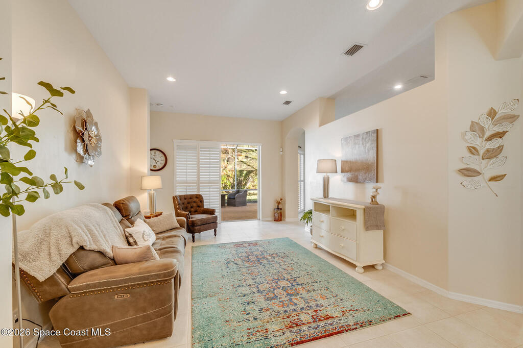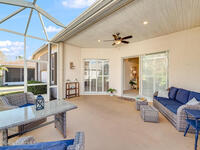 Stunning and meticulously maintained, this exceptional home reflects true pride of ownership with thoughtful details throughout. Offering both a spacious family room and formal living and dining rooms, the layout is ideal for everyday comfort and entertaining. The eat-in kitchen features a center island, breakfast bar, and pantry, creating a welcoming hub of the home. The luxurious primary suite is a peaceful retreat and includes California Closet systems in most closets for optimal organization. Step outside to the extended screened and covered lanai overlooking a serene oversized lot, perfect for relaxing or hosting guests. Additional highlights include plantation and accordion shutters, a 5-year-old roof, new water heater, and newer HVAC system. Low HOA dues provide access to a beautiful two-story clubhouse overlooking the pool and lakes, along with billiards, bocce ball, tennis, a fitness room, and more. All this, just 10 minutes from the beach, offering the best of Florida Living