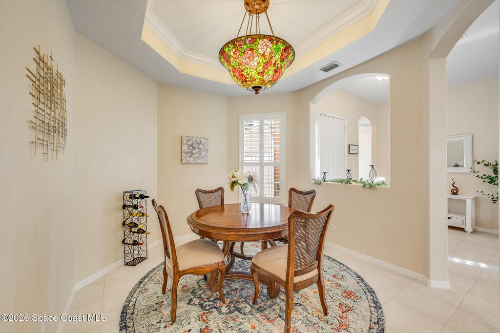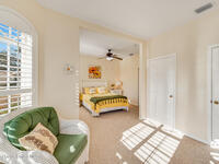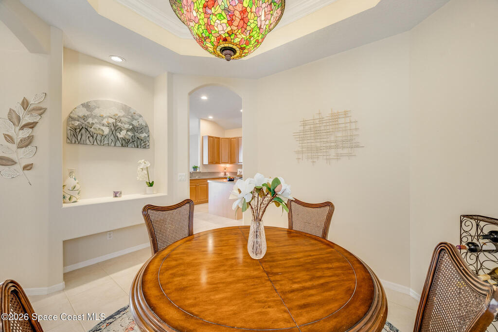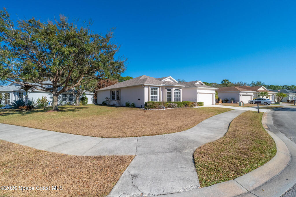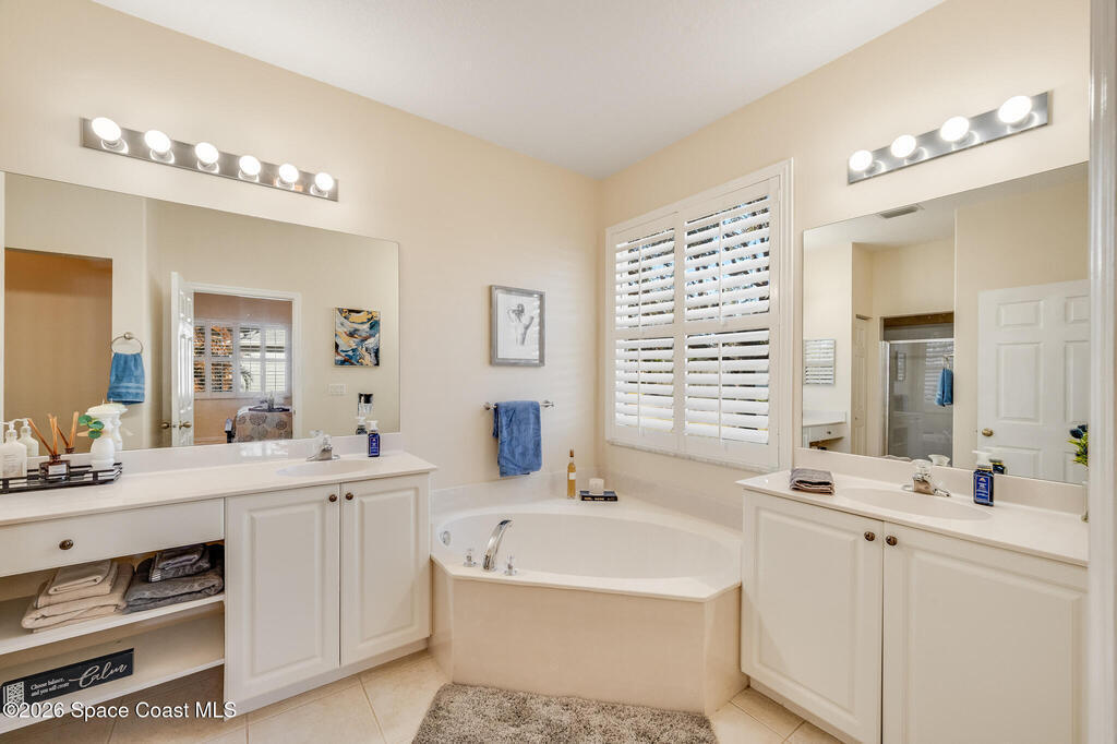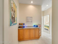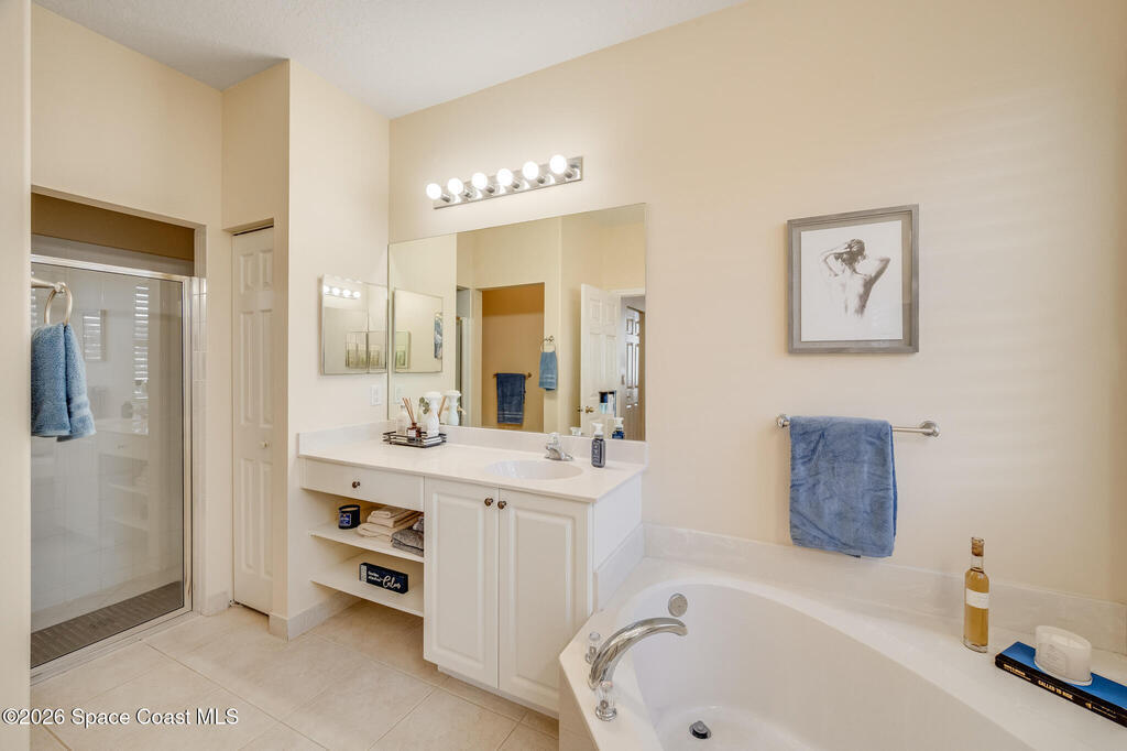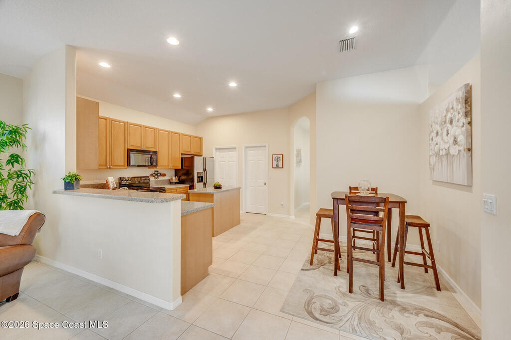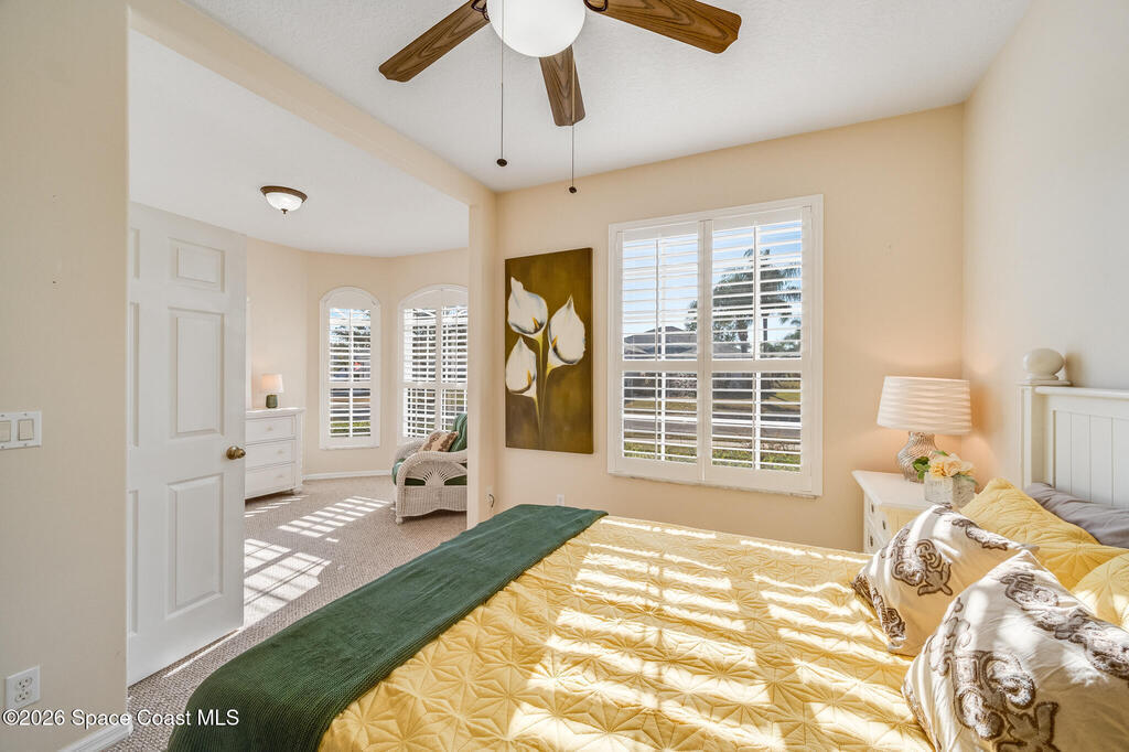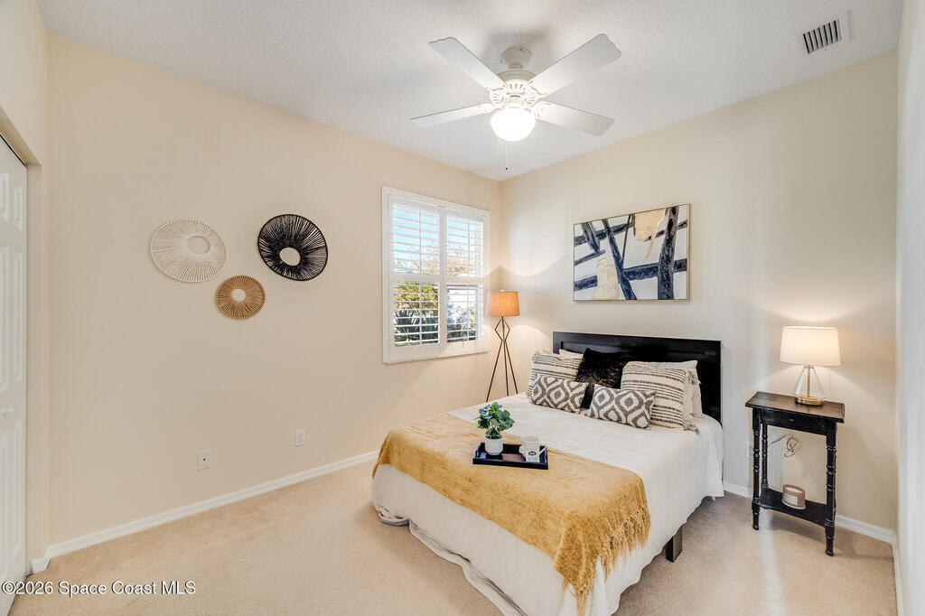 Stunning and meticulously maintained, this exceptional home reflects true pride of ownership with thoughtful details throughout. Offering both a spacious family room and formal living and dining rooms, the layout is ideal for everyday comfort and entertaining. The eat-in kitchen features a center island, breakfast bar, and pantry, creating a welcoming hub of the home. The luxurious primary suite is a peaceful retreat and includes California Closet systems in most closets for optimal organization. Step outside to the extended screened and covered lanai overlooking a serene oversized lot, perfect for relaxing or hosting guests. Additional highlights include plantation and accordion shutters, a 5-year-old roof, new water heater, and newer HVAC system. Low HOA dues provide access to a beautiful two-story clubhouse overlooking the pool and lakes, along with billiards, bocce ball, tennis, a fitness room, and more. All this, just 10 minutes from the beach, offering the best of Florida Living