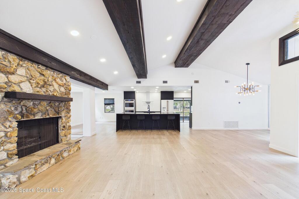 Welcome to this one-of-a-kind fully renovated waterfront home in the highly desirable Majestic Oaks community of St. Cloud. Situated on a rare half-acre corner lot with mature oak trees and low HOA, this property offers a premier boating lifestyle with community dock access to East Lake Toho, Fells Cove, and Lake Ajay. The 2, 311 sq ft split floor plan features 3 bedrooms, 2 baths, multiple living and dining areas, and a chef's kitchen with waterfall quartz island, stainless appliances, custom hood, and double oven. Enjoy a gas fireplace, Florida sunroom, and private courtyard patio. The primary suite includes a freestanding tub and separate shower. Additional features include a screened patio, fire pit, oversized 2-car garage, extended driveway with RV parking, solar system, and Tesla EV charger. Newer roof, 2022 water heater, and 2017 HVAC offer peace of mind. Convenient to Lake Nona, Medical City, dining, and top schools.