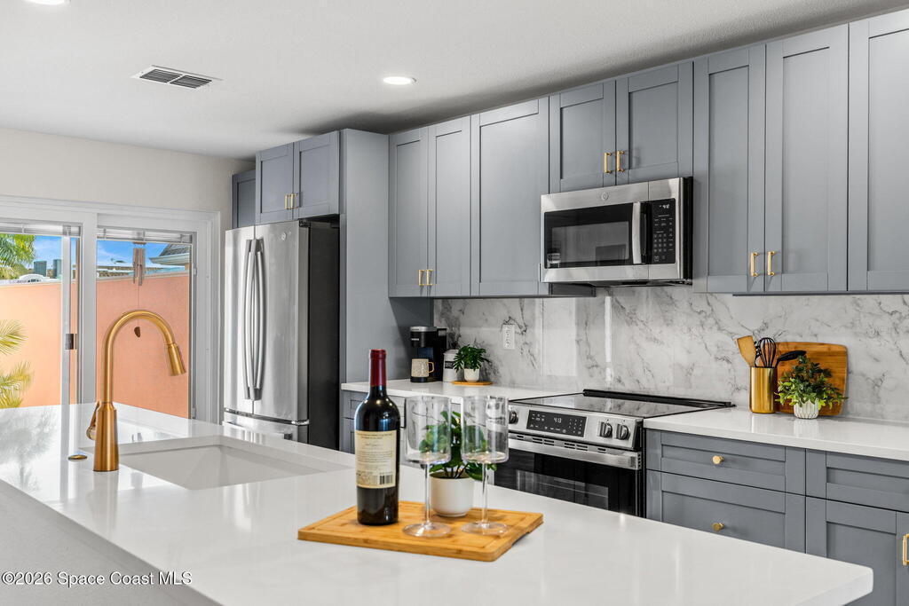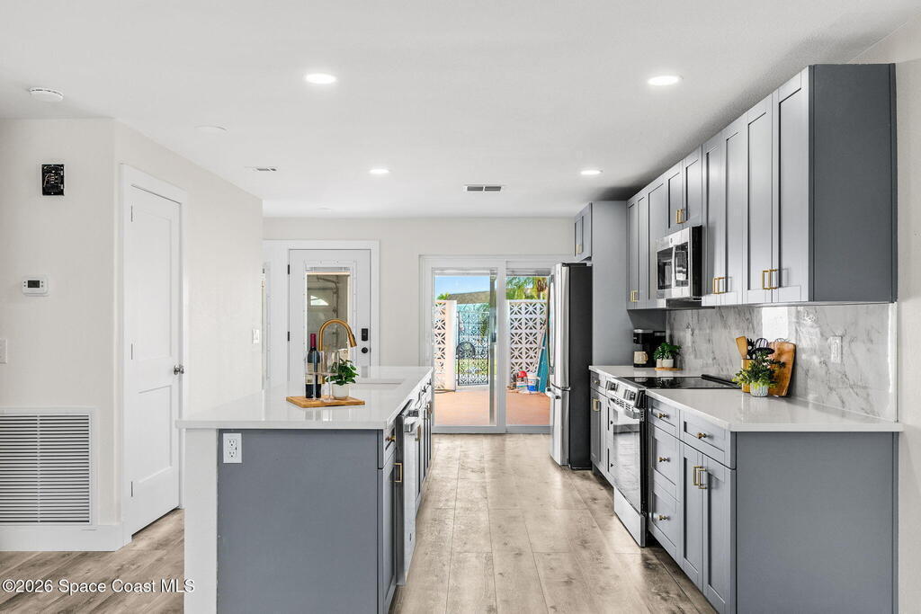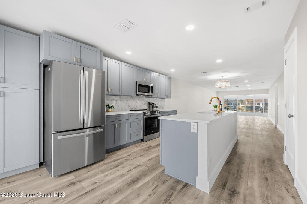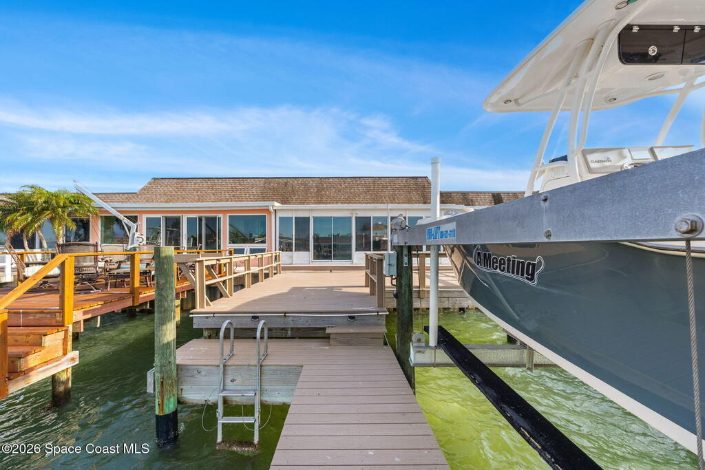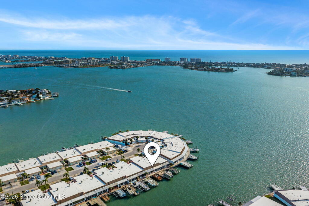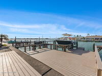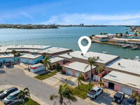 WELCOME TO PARADISE in Boca Ciega Point, a premier, gated 55+ boating community in beautiful St Pete Beach! This stunning 1660 sq ft waterfront villa offers the ultimate Florida lifestyle with DIRECT WATER ACCESS and the rare convenience of YOUR OWN PRIVATE DOCK AND BOAT LIFT-just steps from your back door! This villa has been FULLY reimagined with refined finishes throughout to create a sophisticated yet comfortable coastal retreat. The former galley kitchen was completely opened up and redesigned so views of the water are obvious as you walk in the door! Updates include all new soft close shaker cabinetry, added pantry, premium quartz countertops, tile backsplash, and new stainless steel appliances. The redesigned bathrooms have walk in tiled showers with premium sliding doors, new vanities, and fixtures. Updated lighting, trim, doors, and luxury vinyl plank flooring cohesively run throughout and add to the coastal charm. The large primary ensuite includes his & her walk in closets