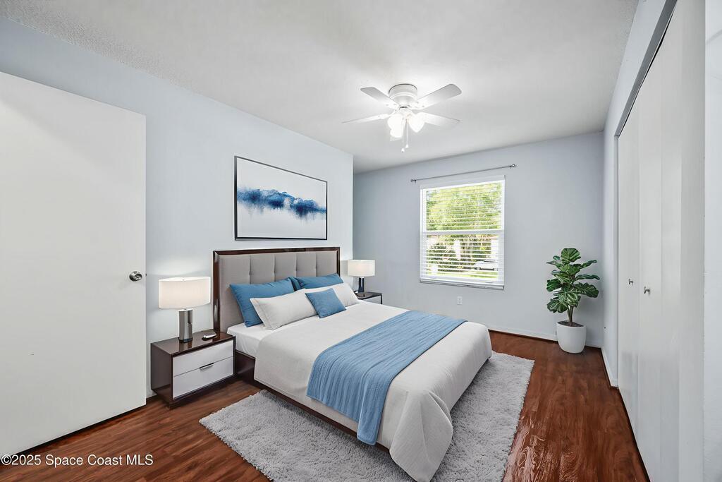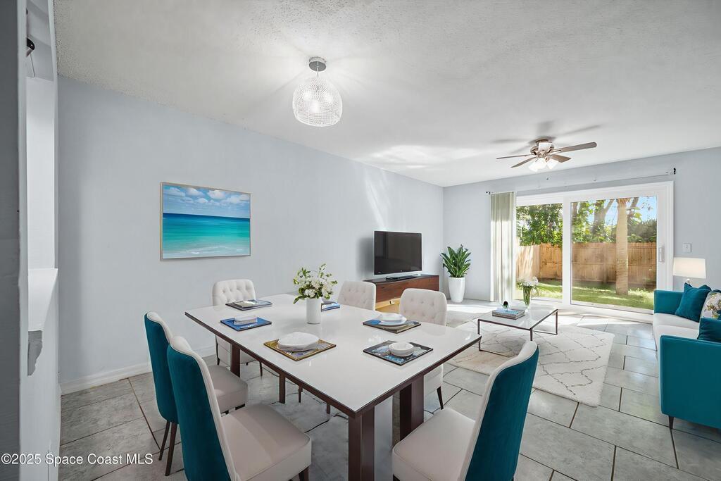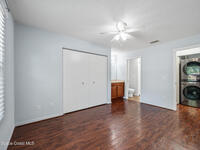 WHY RENT WHEN YOU CAN OWN FOR LESS?? New roof will be installed prior to closing! This beautifully updated townhome is move-in ready & full of upgrades that bring peace of mind & value! Enjoy new ''impact windows'' for safety & energy efficiency, a new A/C system installed in May 2024 & a newer water heater 2018. The Kitchen features a new SS range, dishwasher, & lots of cabinets/countertop space. There's no carpet - just easy-care tile & laminate flooring. Fresh interior paint gives a peaceful yet modern feel. A Jack and Jill Bathroom with upgraded tub/shower combo with tile walls with decorative trim is between 2 sizable Bedrooms. For convenience & space saving, there is a new stackable washer/dryer upstairs. Step outside to your private patio & fenced backyard along with a grassy area, ideal for relaxing or entertaining. No honey-do list here- just move in & start enjoying the many benefits of ownership. Minutes to I-95, Space Center Employers, shops, restaurants, a hospital etc.