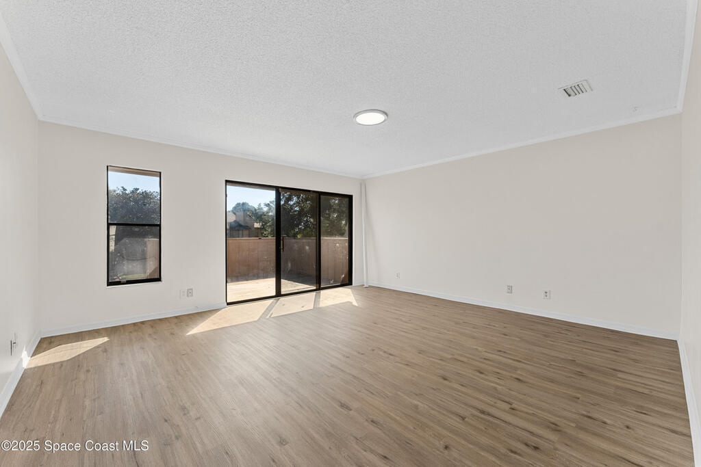 There's No Place Like Home! This inviting 2-story townhome is the perfect opportunity to create your dream space. A charming courtyard entry leads into a fresh, neutral interior with luxury plank flooring and tile throughout--no carpet! Enjoy open living/dining areas, a galley kitchen with breakfast nook with courtyard access, plus a convenient first-floor powder room and laundry. Upstairs, all bedrooms are generously sized; the primary suite offers large walk-in closet & a private balcony for quiet moments. A large screened patio overlooks a cozy, privacy-fenced yard ideal for year-round enjoyment. Major components replaced: 2 HVAC - 2016 & 2020, roof 2020, water heater - 2013, fence 2020. Pet-friendly HOA includes lawn care! Fantastic location near the YMCA, Titus Landing shopping and dining, and a short drive to historic downtown, Playalinda Beach, KSC, the cruise port, airports, and theme parks. Make this townhome your seasonal retreat or rental investment! No HOA restrictions.