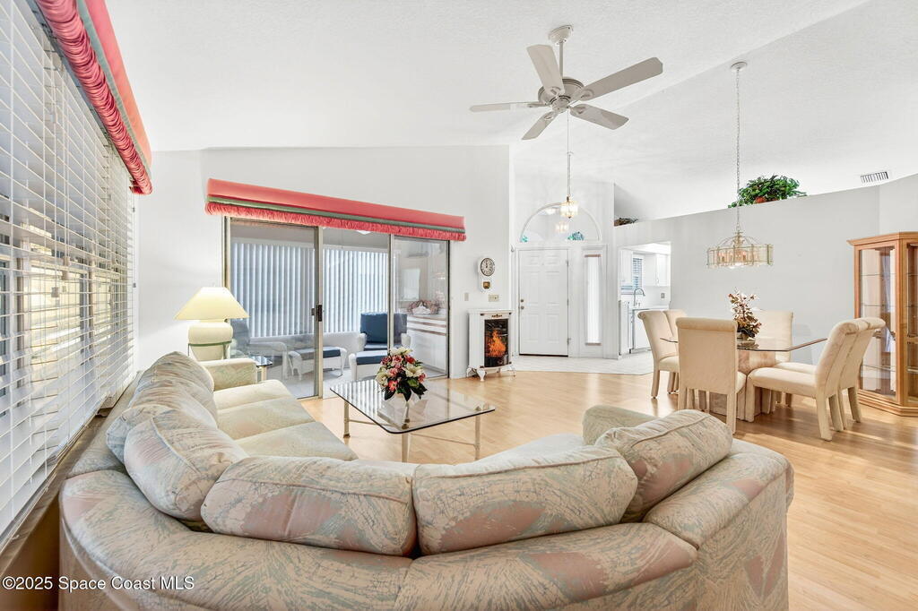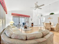 Located on a beautiful tree lined street in the Gated area of Village Grove in the golf course community of La Cita, This 2 bdrm residence was designed as a 3 bdrm home so in addition to a great rm w/ vaulted ceiling, bdrm #3 is now an open family rm to the kitchen & makes a great office /TV rm Same owners have occupied this home since 1994 & have kept it in pristine condition. NEW ROOF SHINGLES IN 12/2023. UPDATED KITCHEN IN 2023: CABINETS w/ SOFT CLOSE DOORS, NEW HANDLES, SINK & FAUCET & CORIAN QUARTZ COUNTER-TOPS. BUILT-IN COOK TOP, BUILT-IN OVEN & MICROWAVE & TILE BACK SPLASH. MOSTLY NEW ANDERSON WINDOWS IN 2023 ARE DOUBLE HUNG IMPACT WINDOWS (rated to 160 mph ) NEW HVAC IN 2020, NEW EXTERIOR PAINT 2021. Tile floors in the foyer, kitchen, family rm & enclosed porch w/ laminate in the living rm & bdrms. Glass enclosed side porch & screened back porch w/ insulated ceiling to enjoy the outdoors. NEW ELECTRICAL PANEL . YARD MAINTENANCE IS PROVIDED BY THE ASSOCIATION. NICE!