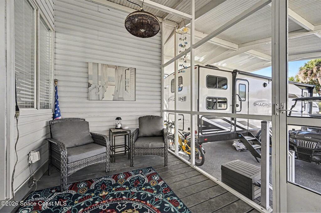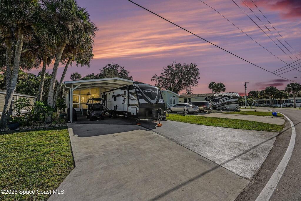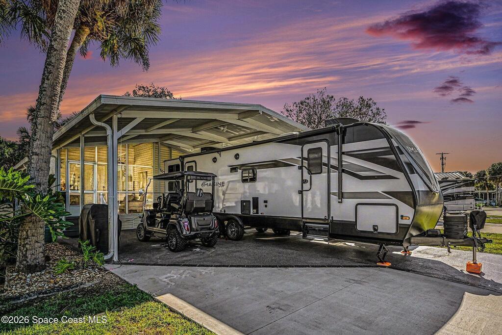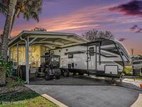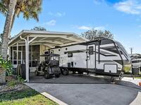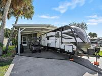Welcome to resort living in The Great Outdoors Premier RV & Golf Resort! This updated 2-bedroom, 1.5-bath park model home offers comfort, convenience, and room to spread out. Enjoy a covered carport/RV port with a raised 13' roof, plus an additional 466 square feet of concrete for extra parking or outdoor entertaining. Recent upgrades include a new 8x12 Lark building with electric and a thermostat-controlled ventilation fan, a new vanity in the half bath, and an ultraviolet light added to the A/C system. A 2023 survey is available for peace of mind. Offered partially furnished (antiques and living room rug excluded), this well-maintained home is perfectly suited for seasonal or full-time resort living with access to golf, pools, and endless amenities.