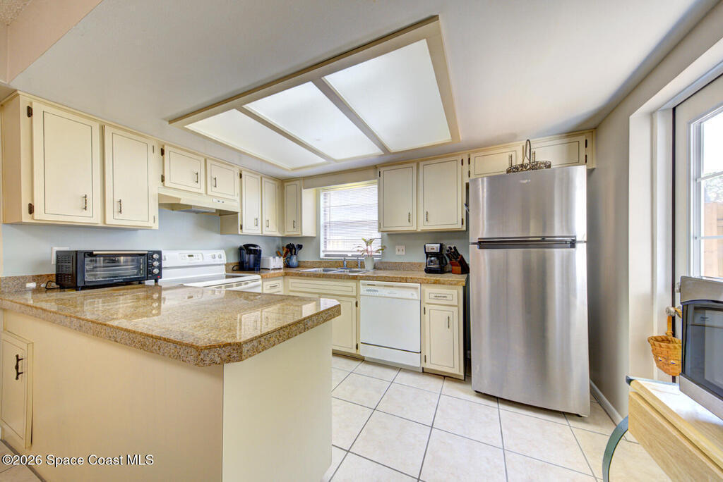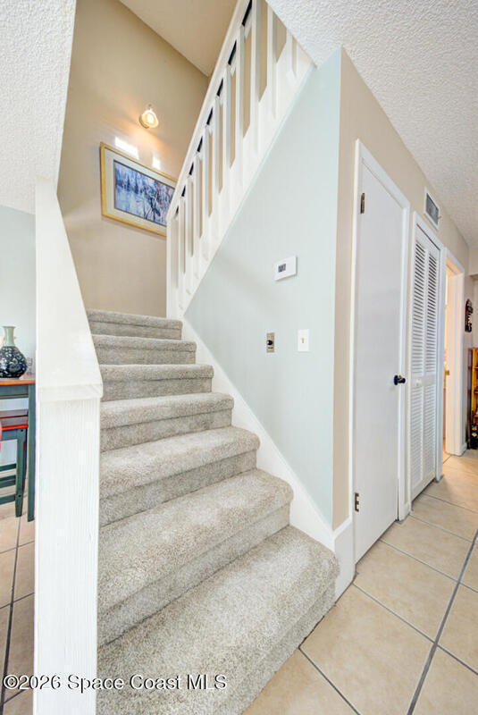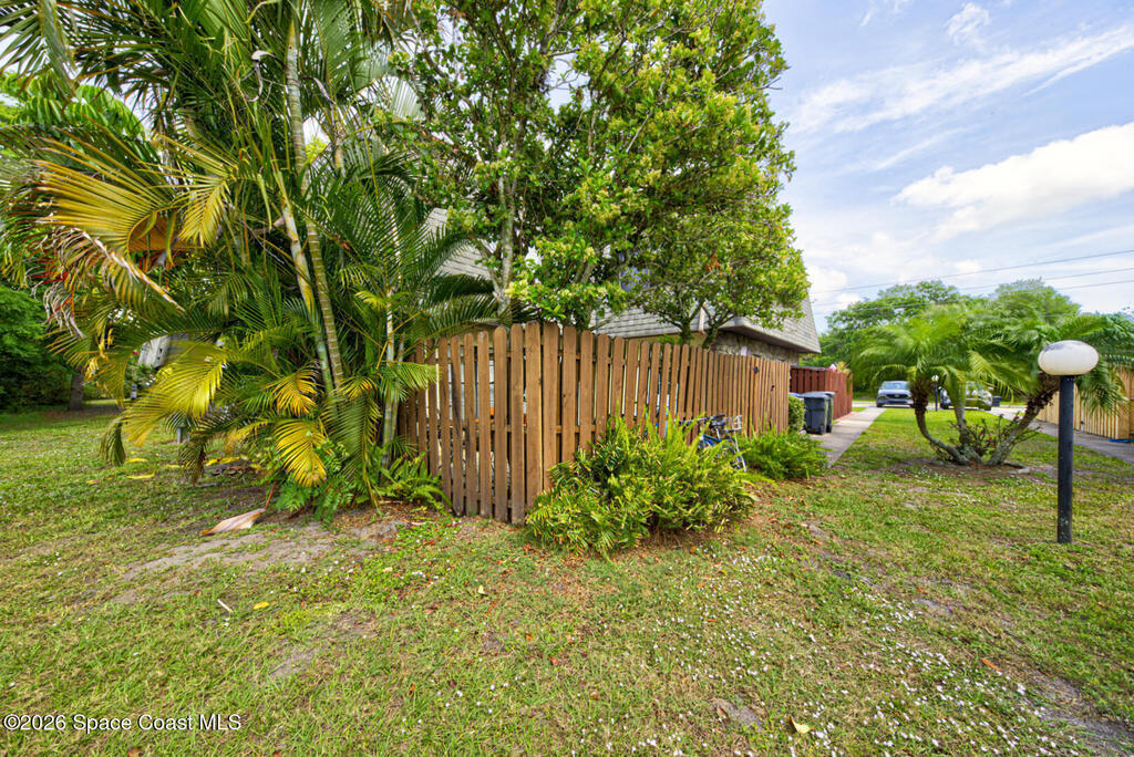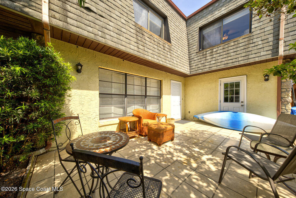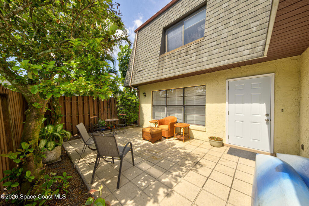 Well Maintained, Spaciously Designed 2 Bedroom, 1 Full & 1/2 Bathroom, 2 Story Townhome located in Titusville. This home features a New A/C Unit (2025) as well as a Flat Roofing Sealant System by EverSeal that is under warranty and fully transferable to all future owners of the Property. Many other upgrades (2025) include: New Carpet on Second Floor and Stairs, New Walk in Shower & toilets in Bathrooms, Tankless Hot Water Heater, New Washer & Dryer Hookups, New Ceiling Fans & Lighting Fixtures, Professional Paint throughout, and New Entryway Doors. A Large Fenced In (6ft privacy fence) Courtyard with mature tropical landscaping is great for outdoor entertainment or just your own little Oasis. Along with low HOA fees and ample parking, this place is worth looking at.