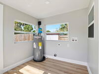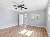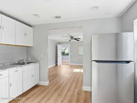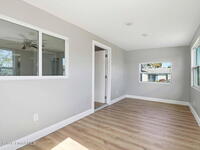 This 2 bedroom, 1 bathroom house in Titusville is simple, clean, and easy to live in. The inside has fresh paint and wood laminate floors throughout, so there's no carpet to deal with. In addition to the living room, there's an enclosed front porch and an enclosed back porch, which gives you extra room for things like working from home, hobbies, storage, or just spreading out a bit. The back porch also has washer and dryer hookups. The kitchen has very clean cabinets and appliances, and the backyard is fully fenced. There's also a shed for tools, bikes, or extra storage. If you're looking for a functional rental house in Titusville with extra usable space, this one checks a lot of boxes.