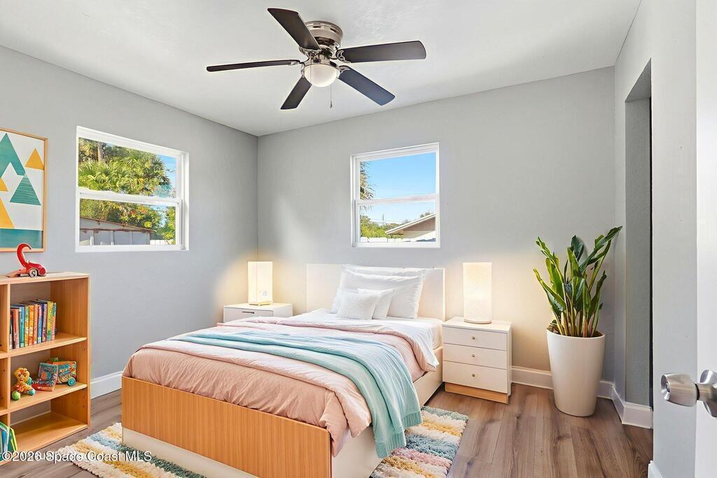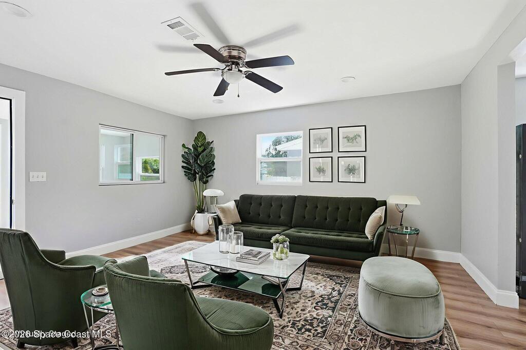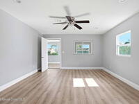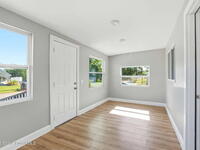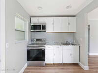 This 2 bedroom, 1 bathroom house in Titusville is simple, clean, and easy to live in. The inside has fresh paint and wood laminate floors throughout, so there's no carpet to deal with. In addition to the living room, there's an enclosed front porch and an enclosed back porch, which gives you extra room for things like working from home, hobbies, storage, or just spreading out a bit. The back porch also has washer and dryer hookups. The kitchen has very clean cabinets and appliances, and the backyard is fully fenced. There's also a shed for tools, bikes, or extra storage. If you're looking for a functional rental house in Titusville with extra usable space, this one checks a lot of boxes.