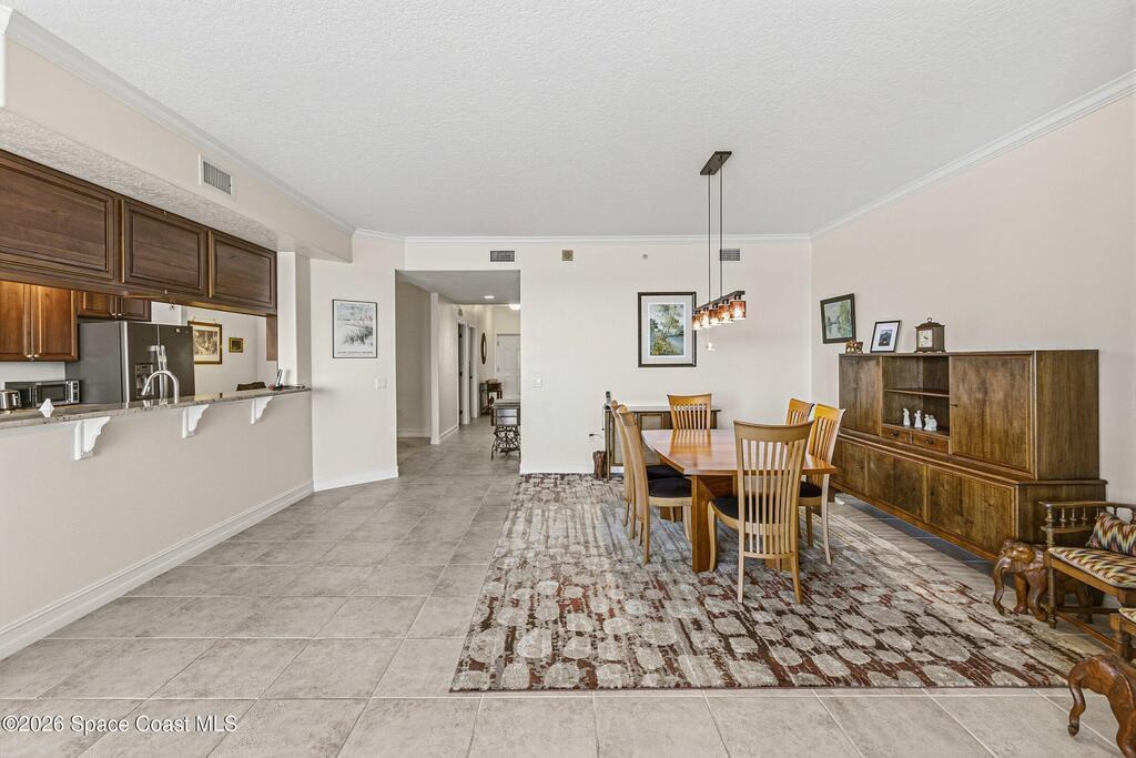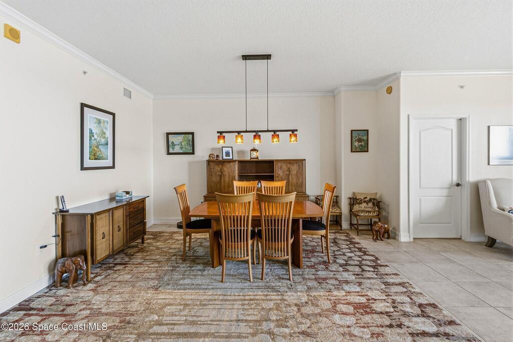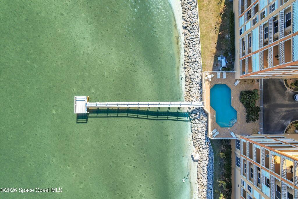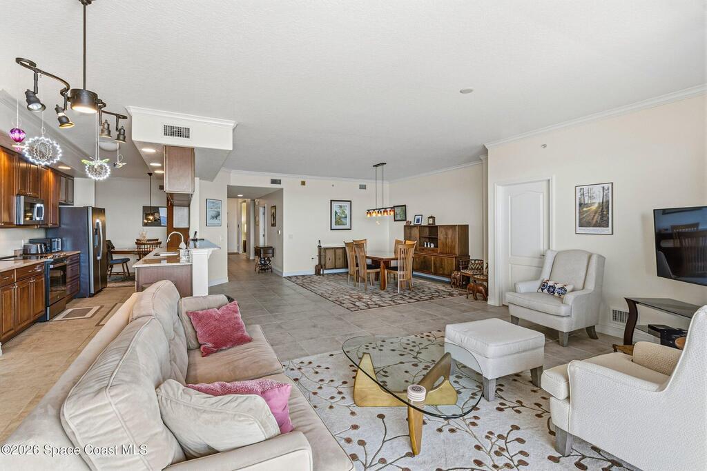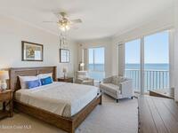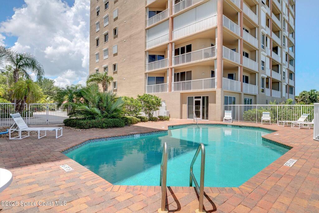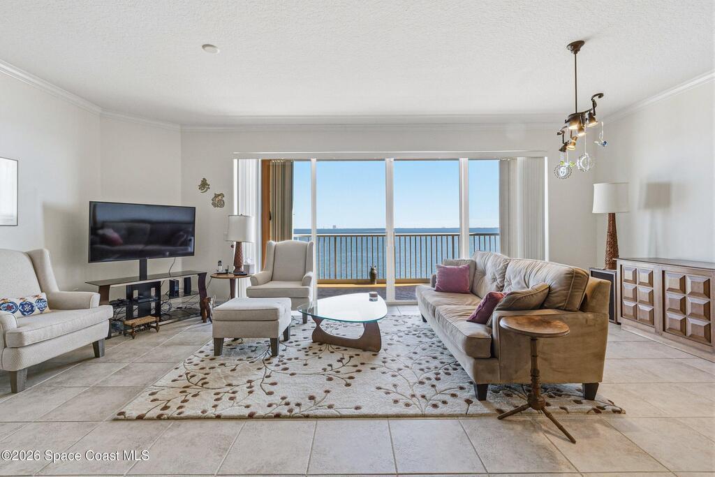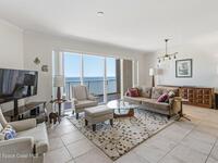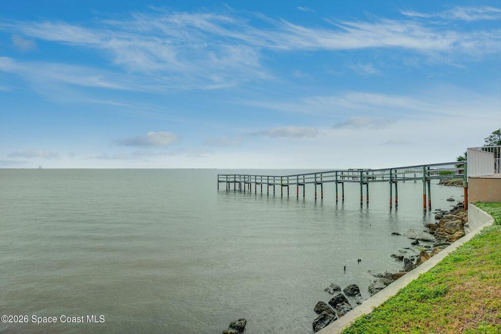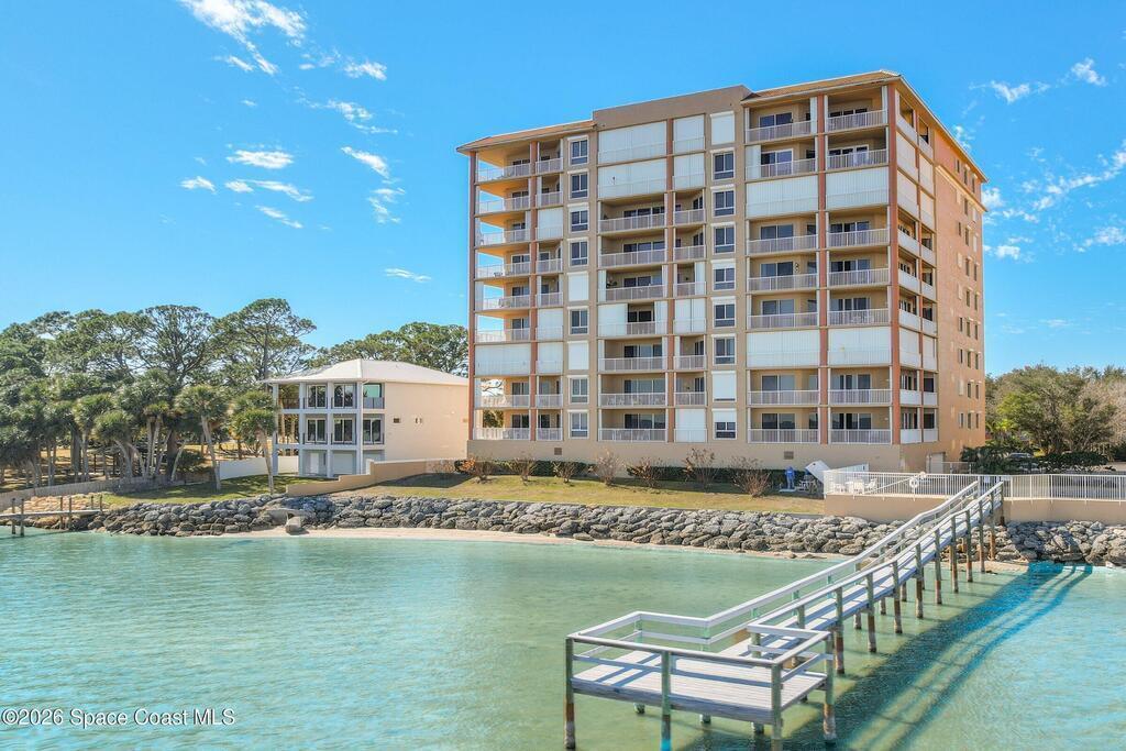 The most sought after direct Indian River views from this gorgeous 4th floor unit. Enjoy views of the Space Center and rocket launches, river wildlife and spectacular sunrises. 3 spacious bedrooms- main bedroom with slider to balcony for private enjoyment. His & her closets, large main bathroom with double vanity, garden tub and separate shower. Large kitchen with appliances all new in 2021. Eat in area off the kitchen. Dining room and great room both with views of the river. Unit also offers small sitting room/office. Water heater replaced in 2019, AC in 2024 and washer/dryer 2023. Beautifully maintained complex offers pool, underground parking and up to date security.