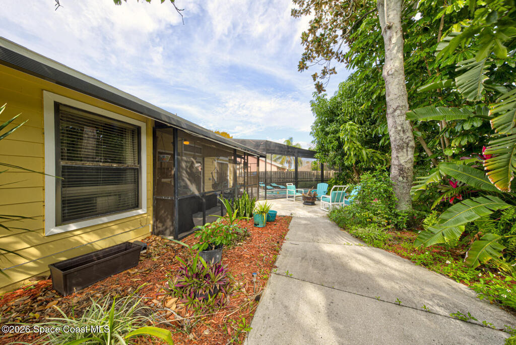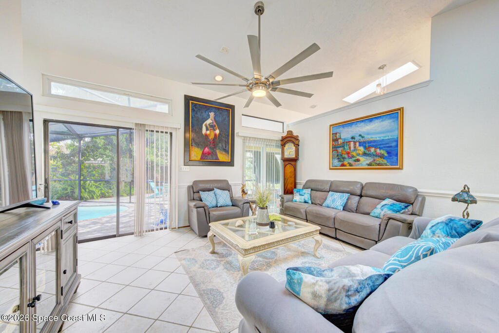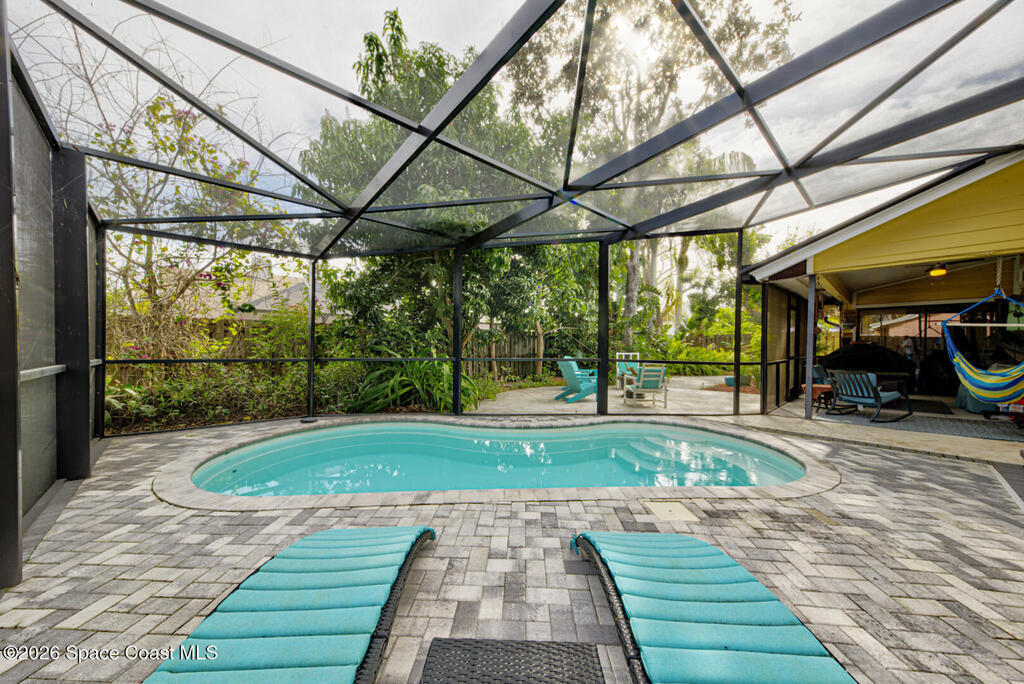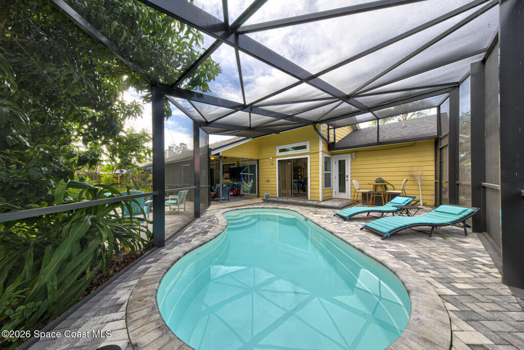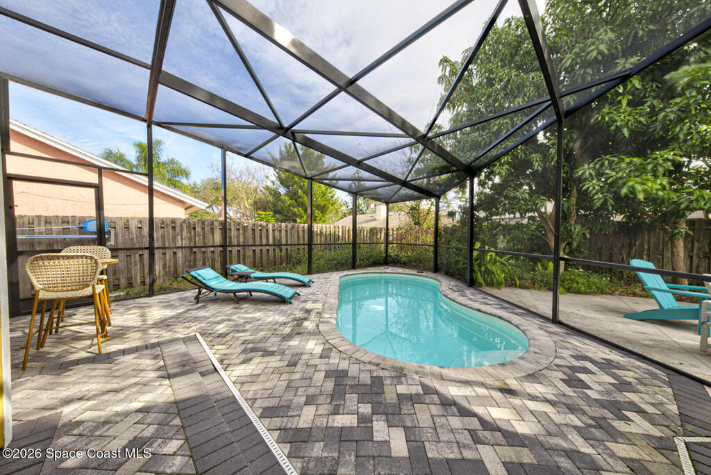 Spaciously Designed, 3 Bedroom, 2 Bath, Split Plan, 2 Car Garage, Pool Home with 1757 sqft under air (2495 under roof) located in the neighborhood of La Cita in Titusville. This home has much to offer with an open living room/dining room combo, vaulted ceiling, lots of natural lighting, skylights (replaced in 2025), completely updated (in 2023) eat-in kitchen w/custom wooden cabinetry, solid surface (stone) countertops & stainless/black appliances, large bedrooms to include TWO (2) primary suites with walk-in closets (1 with separate walk-in shower and separate soaker tub), large inside laundry room, screened-in back patio and pool area with professionally installed pavers and path through back yard lined with mature tropical foliage. Roof replaced in 2025, HVAC replaced in Jan 2026, 2 hurricane strength sliding glass doors, the sundown windows above the sliders and exterior pool door all replaced in 2021. Low HOA under $200 annually. This property is worth taking a look at...