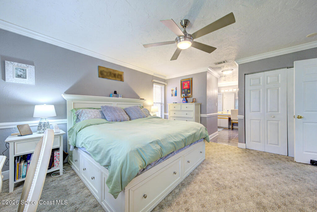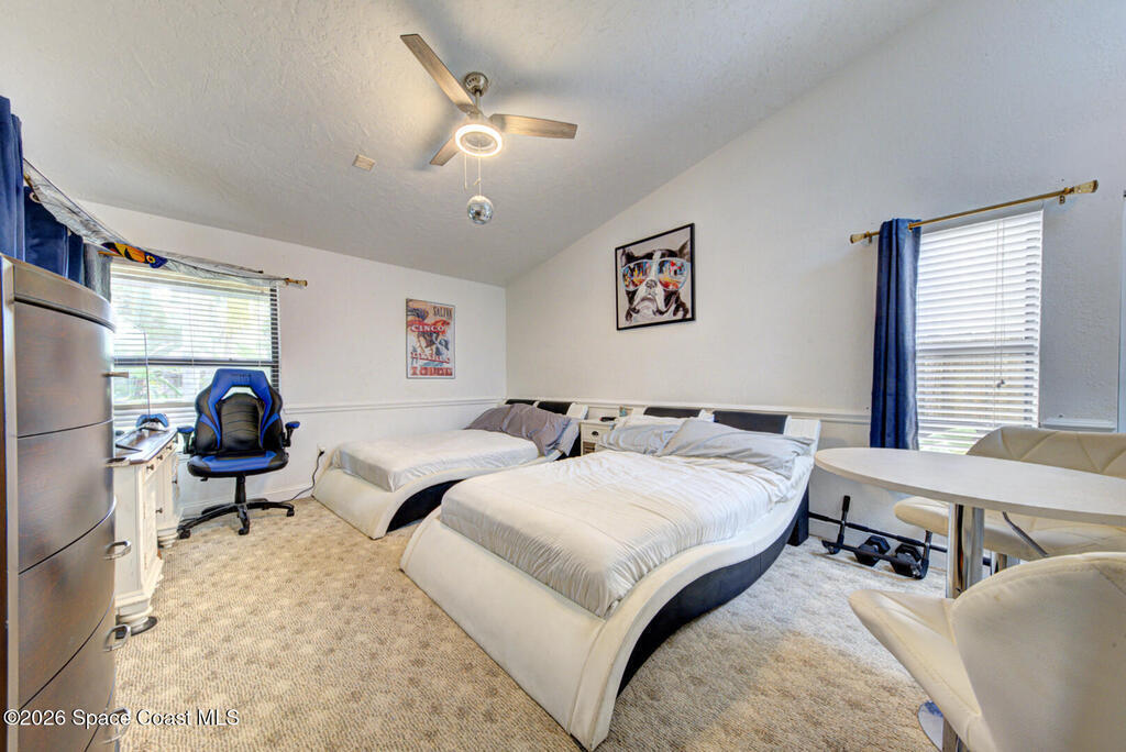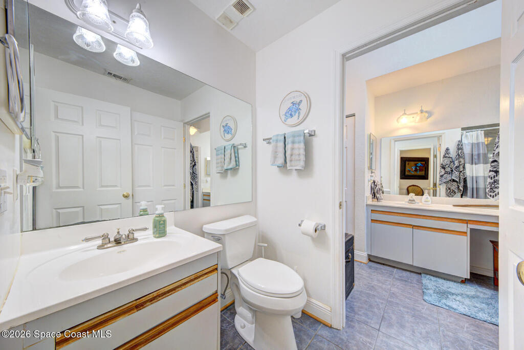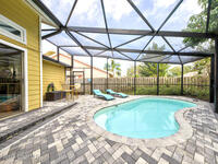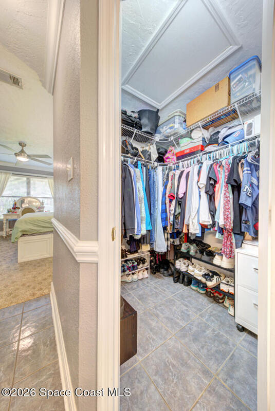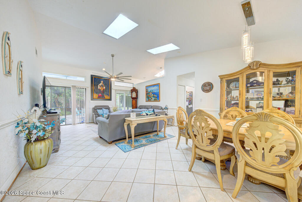 Spaciously Designed, 3 Bedroom, 2 Bath, Split Plan, 2 Car Garage, Pool Home with 1757 sqft under air (2495 under roof) located in the neighborhood of La Cita in Titusville. This home has much to offer with an open living room/dining room combo, vaulted ceiling, lots of natural lighting, skylights (replaced in 2025), completely updated (in 2023) eat-in kitchen w/custom wooden cabinetry, solid surface (stone) countertops & stainless/black appliances, large bedrooms to include TWO (2) primary suites with walk-in closets (1 with separate walk-in shower and separate soaker tub), large inside laundry room, screened-in back patio and pool area with professionally installed pavers and path through back yard lined with mature tropical foliage. Roof replaced in 2025, HVAC replaced in Jan 2026, 2 hurricane strength sliding glass doors, the sundown windows above the sliders and exterior pool door all replaced in 2021. Low HOA under $200 annually. This property is worth taking a look at...