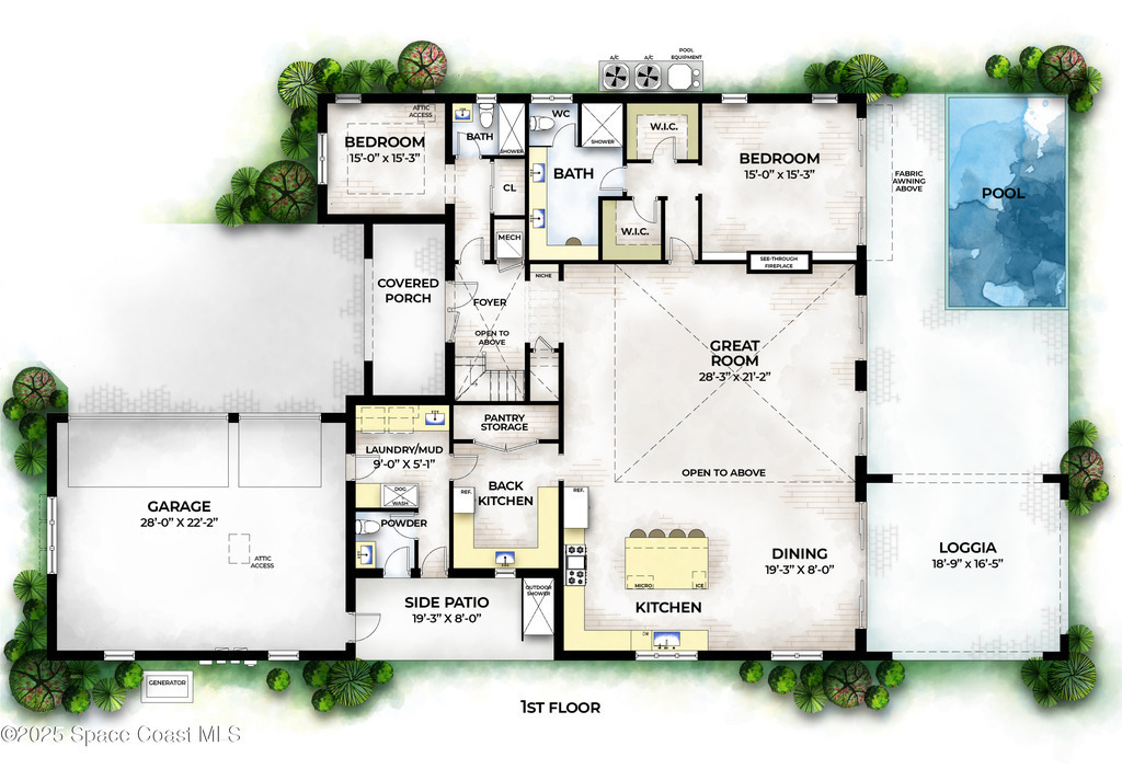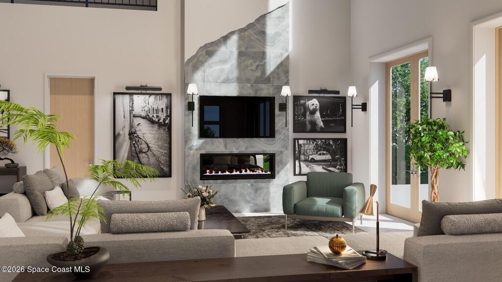 Located in the Shores at Tranquility, this to-be-built custom estate offers over 4000 square feet of living space in one of Titusville's most desirable new communities. The thoughtfully designed 4-bedroom, 3.5-bath residence blends modern architecture with high-performance construction.Built with full insulated concrete form (ICF) construction on all floors, an engineered slab, wind-rated roof system, and impact-rated windows and doors, this home delivers strength, comfort, and durability. Interior features include level-5 drywall finishes, solid-core doors, oversized trim, custom cabinetry, and architectural detailing. Open living areas flow to covered outdoor spaces.Additional highlights include zoned Daikin HVAC, open-cell spray foam insulation, tankless gas water heater, whole-home generator, 400-amp electrical service pool, paver entry and lanai, and integrated security. Minutes from beaches, boating, and rocket launches on Space Coast!!