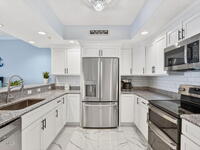 Built in 2023 & offering the 2nd Largest Floor Plan in River Palms, this Waterfront Condo delivers iconic Space Coast Views. Enjoy Impact Windows & a Private Balcony overlooking the Indian River & Kennedy Space Center for front row seats to Rocket Launches from the Living Room or the Primary. Inside, oversized Porcelain Tile runs throughout, paired w/ Granite Counters in the Kitchen & Baths. The Kitchen shines w/ SS Appliances, an Upgraded Double Oven, Farmhouse Sink, & Classic Subway Tile. A dedicated Laundry Room includes a Smart Front Load Washer/Dryer + Pedestals & Utility Sink. The Living & Dining areas are enhanced w/ Crown Molding. The Primary Suite features a Walk-in Closet & En Suite w/ Dual Sinks. Spot Manatees, Dolphins & Stingrays daily! Resort Style Amenities include a Waterfront Heated Pool, Clubhouse, Fitness Center, & Garage Parking. Maintenance Fee includes Water, Sewer, Trash, Internet & Cable. Minutes to Beaches, Dining, Shopping & SR 528.