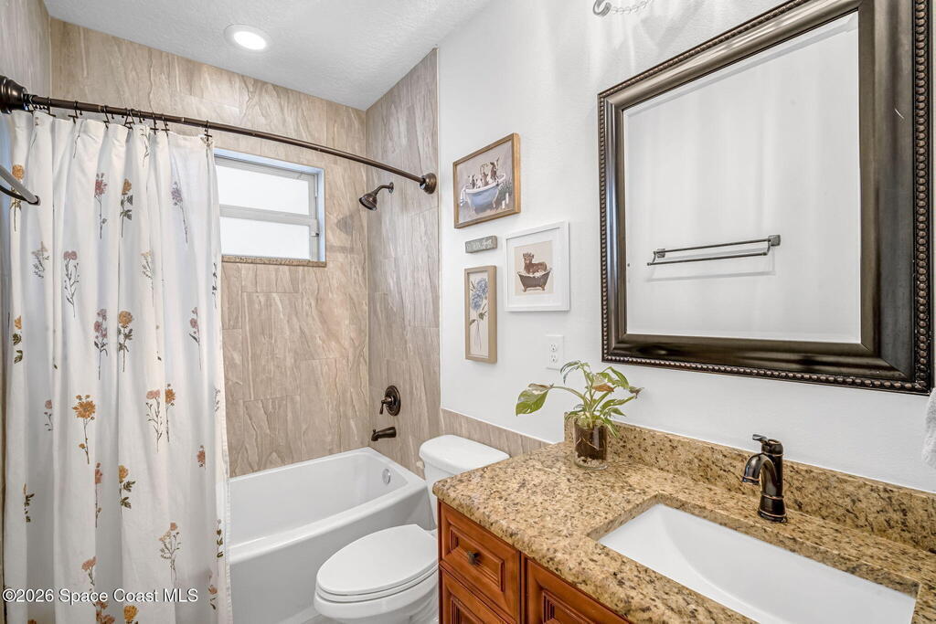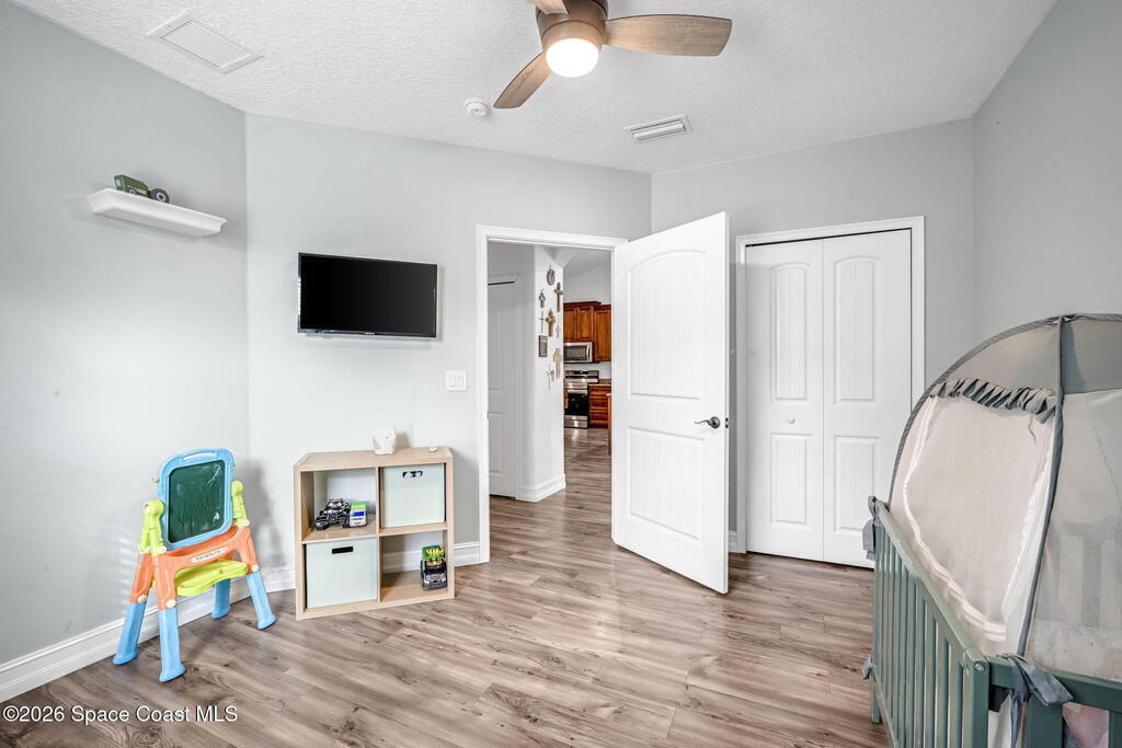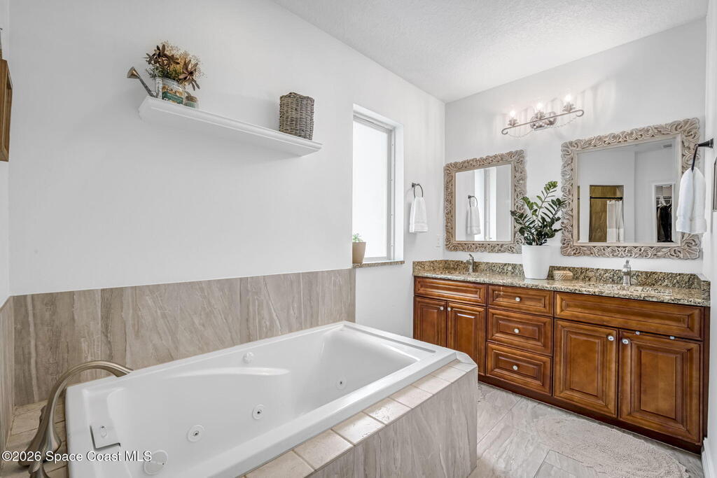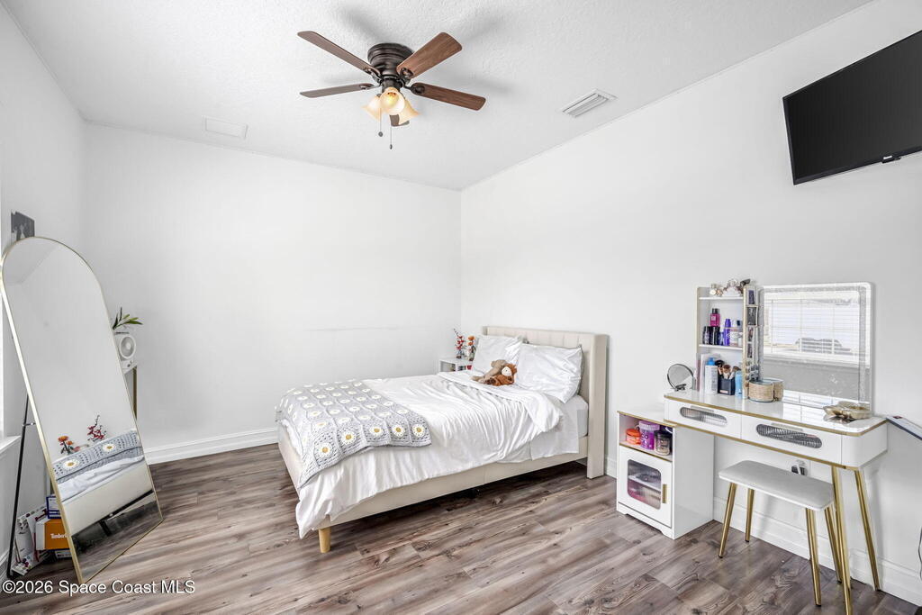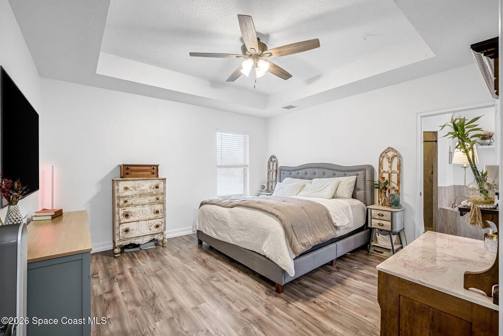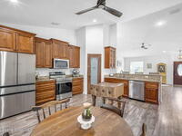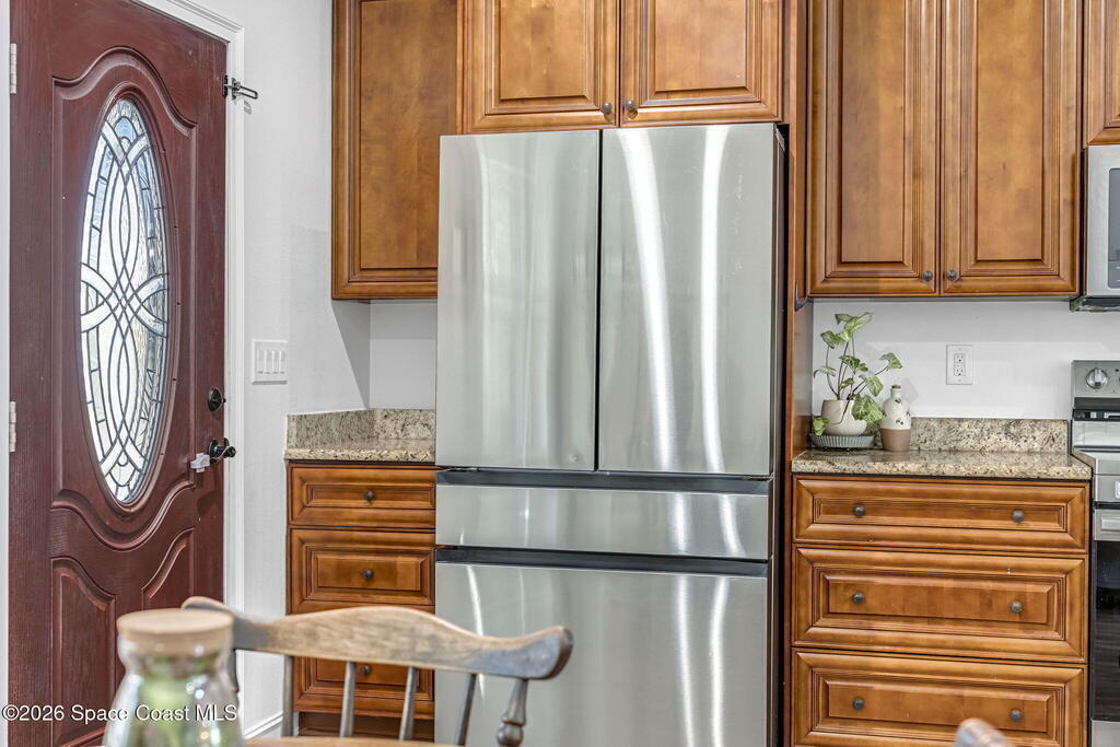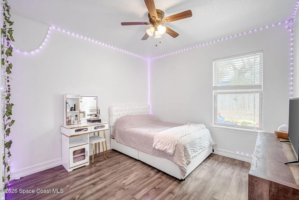 Beautifully maintained brick over block home in peaceful Titusville with no HOA and paid off solar for low electric bills. Built in 2019, this 4BR/2BA/2 car garage home features an open layout, eat n kitchen with stainless steel appliances, granite countertops, soft close cabinetry, large pantry, and breakfast bar. Spacious primary suite offers walk-in closet, jetted tub, separate shower, and dual vanities. Enjoy a screened patio plus extended concrete patio ideal for entertaining, along with an extended driveway for a boat, trailer, or extra vehicles. Additional upgrades include cathedral ceilings, commercial grade laminate and porcelain tile throughout (no carpet), indoor laundry, irrigation, water softener, storm shutters, city water/sewer, and EV-ready garage wiring. Move in ready and energy efficient schedule you're showing today.