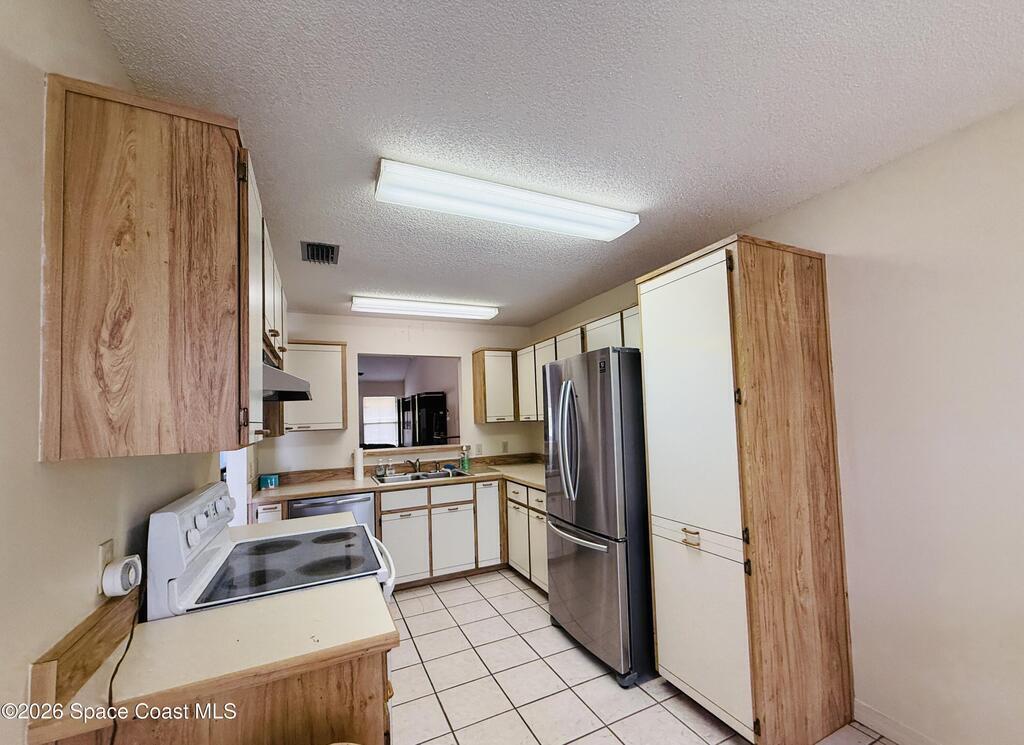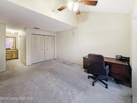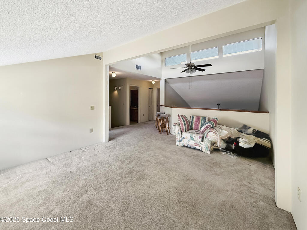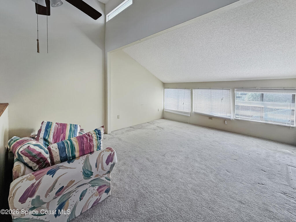 Discover the perfect blend of space and potential in this 3-bed 2.5-bath townhouse located in the quiet Outback community of Titusville. Positioned as the second unit in a private row of five, this home features a highly desirable floor plan with the Primary Suite located on the ground floor. The main living area boasts soaring vaulted ceilings and a classic brick fireplace, creating a warm and airy atmosphere. Upstairs, you'll find two bedrooms and a versatile open loft area--perfect for a home office, play space, or reading nook. The kitchen is equipped with stainless steel fridge and dishwasher. Functional features include a 1-car garage that houses the laundry area complete with a utility sink. Enjoy the peaceful surroundings of Canberra Court, located just a short distance from the local tennis club and SR-50. This home is a fantastic opportunity for those looking to add their personal touch in a well-established neighborhood.