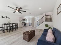 Welcome to this beautifully remodeled 3-bedroom, 2.5-bath corner unit townhouse designed for comfort, style, and peace of mind. Every detail has been thoughtfully updated, making it the perfect place for a fresh start.Step inside to a bright and airy open living and dining area filled with natural light and enhanced by abundant new lighting throughout the home. The updated kitchen features modern cabinets, elegant granite countertops, and brand-new appliances, creating a clean and stylish space for cooking and gathering.Major upgrades include hurricane-rated windows and sliding doors, along with a brand-new electrical panel, offering both safety and efficiency.The flexible floor plan also includes a separate bonus area perfect for a home office, media room, or entertainment space, giving you room to live and work comfortably. Outside, enjoy a fully fenced yard with brand-new sod, ideal for relaxing, entertaining, or pets. As a corner unit, they property offers added privacy.