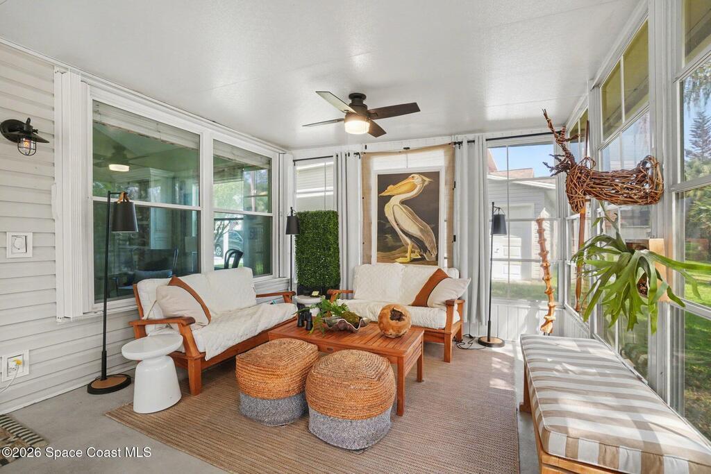 Enjoy resort-style living in this spacious home located in The Great Outdoors Premier RV / Golf Resort in Titusville. This property features a large RV port, generous living space, and a versatile loft area--perfect for guests or additional storage. An attached golf cart garage adds extra convenience for getting around the community. Offered furnished, the home showcases complete cosmetic upgrades along with a newer A/C unit (2020) and a water treatment system. A perfect opportunity to settle in and start enjoying the Florida resort lifestyle.