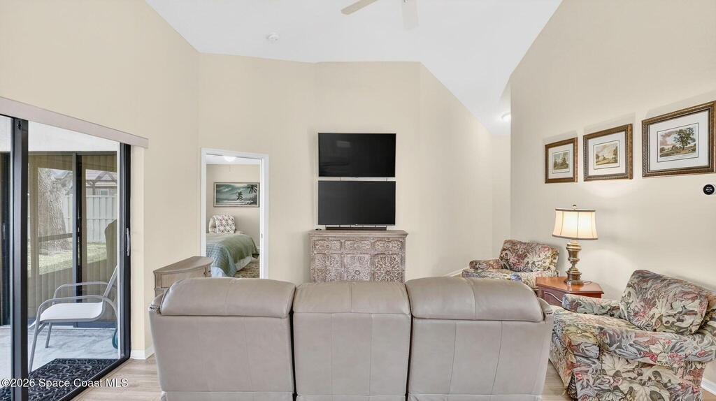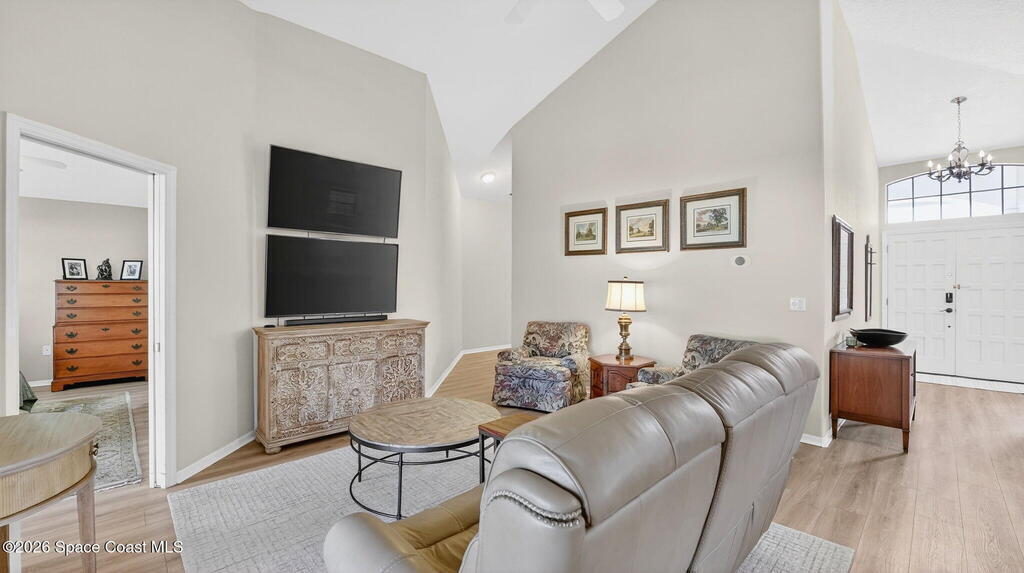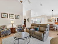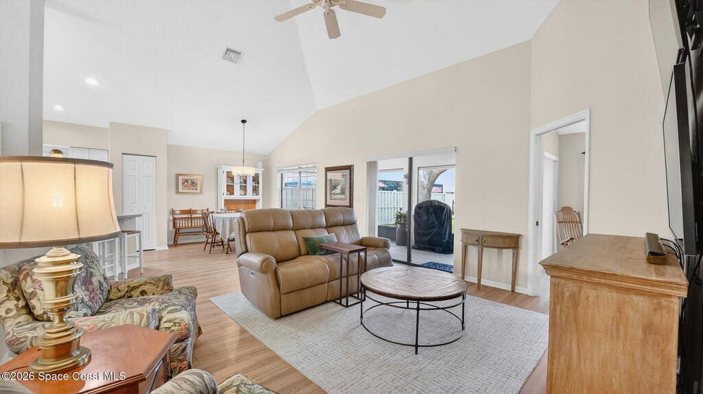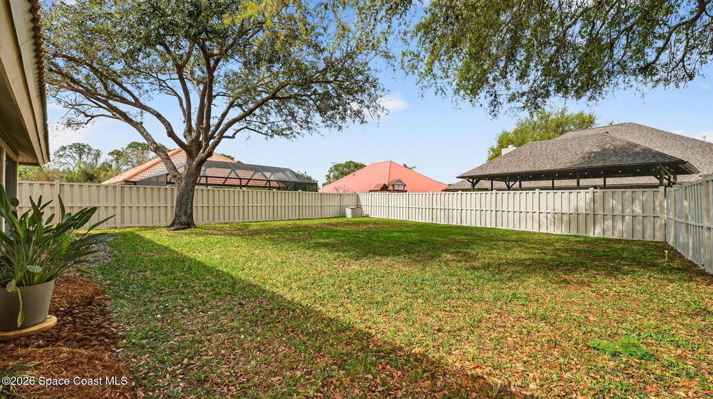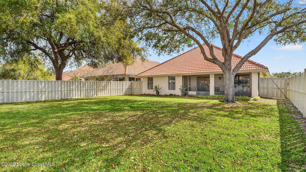 Beautiful 3-Bedroom, 2-Bath + Den Home, Located in a Highly Sought After Community! Excellent Curb Appeal - You Are Welcomed by Lush Landscaping, Immaculate Exterior Care & Maintenance! The Open Layout of the Dining, Kitchen & Living Areas Are Showcased by the Vaulted Ceilings & Natural Light. The Kitchen Features an Insta-Hot Water Tank, New Stainless Steel Refrigerator & Is Plumbed for a Gas Range! The Master Suite Features Garden Tub, Tiled Shower, Walk-In Closet & Sliders to the Back Porch. The Split Plan Has Two More Spacious Bedrooms & Bath. Enjoy Florida's Weather from the Screened Porch While Appreciating the Privacy of the Fully Fenced Backyard. New Gas Water Heater, Neutral Laminate Flooring & Irrigation! This Community is Close to Shopping & Just Minutes from KSC, Beaches & Orlando!