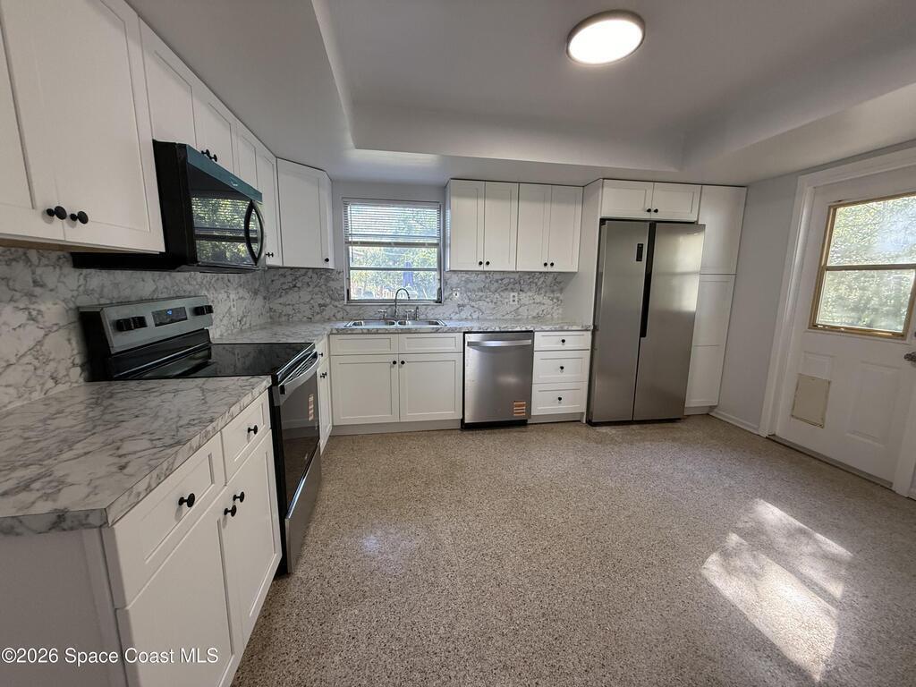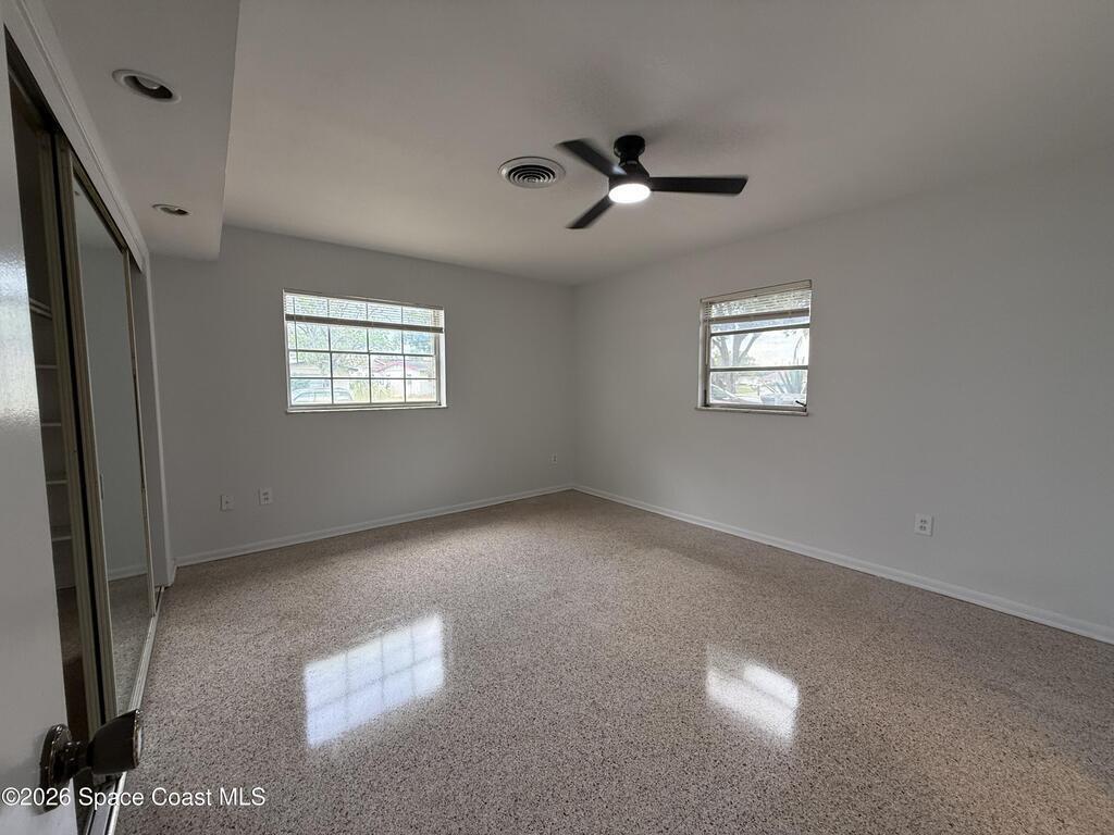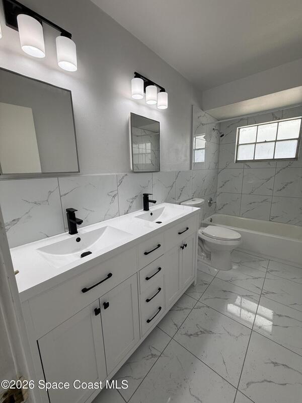 Spacious 5 bedroom, 2 bathroom home with garage, featuring beautifully renovated bathrooms and a fully updated kitchen with new plumbing and stainless steel appliances, including a microwave. The interior and exterior have been freshly painted, giving the home a clean, move-in-ready feel. Enjoy a large backyard (fenced along the back and one side) plus a powered shed with lighting, ideal for storage or projects. The screened in back porch includes a ceiling fan and a convenient pass through window to the kitchen. Brand new blinds are installed on all windows, and a dedicated laundry room is located next to the garage. Prime location near US1, I95, the beaches, Kennedy Space Center, Orlando, and more. Pets considered on a case by case basis with a $275 non-refundable fee.Application fee: $75 per adultLease fee: $100Deposit: starts at $2, 295Apply online at BrevardPropertyManagement.com NOT on Zillow.