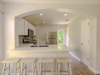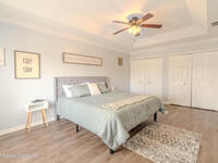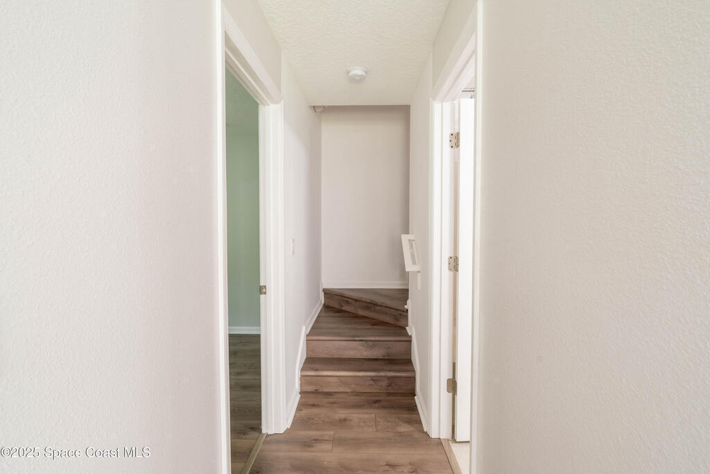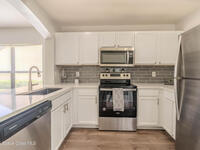 Lovely Two-Story Townhome featuring a living/dining room combo floorplan and is a 3bdrm, 2bath. Nice vinyl plank flooring and tile thru-out. The downstairs has 2bdrms & a full bath, Step-Saver kitchen with architectural archway, breakfast bar, quartz counter tops & a pantry. Upstairs features a huge primary bedroom with double closets and a full bath that encompasses the entire 2nd level. Tray ceilings in the bedrooms are an additional architectural touch. Full glass door leads to quaint backyard that is perfect for your little pets. Inside laundry room - washer & dryer can stay but not warranted. Located in area of quick access to SR405 or Hwy 50. Just minutes to KSC, Orlando and other main areas of travel.