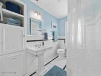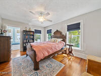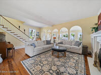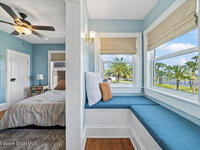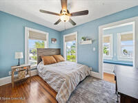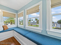 Stunning historic Craftsman waterfront home on the Indian River Lagoon featuring 5 bedrooms, 3.5 baths, and 3, 300 sq ft of timeless charm and modern upgrades. Highlights include original Southern pine floors, wood-burning fireplace, custom built-ins, and newly installed hurricane impact windows. Enjoy a screened-in pool, outside shower, two private courtyards, and a detached 2-car garage with a bonus room and full bath--ideal for guests or a private office. Take in panoramic river views from the second-story sunroom with cozy window seats. Outdoor living shines with a coquina seawall, riverside deck with fire pit, and an impressive 250-ft dock with boat lift and two-story platform. Prime location offers breathtaking views of rocket launches across the river at Kennedy Space Center. This is more than a home--it's a rare opportunity to own a piece of history with unmatched waterfront views and lifestyle.