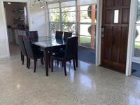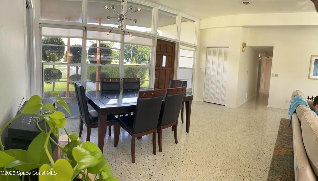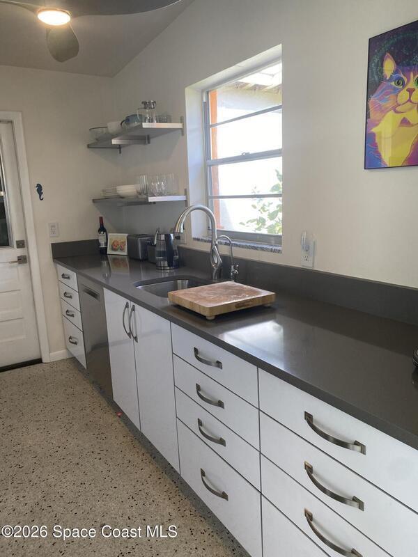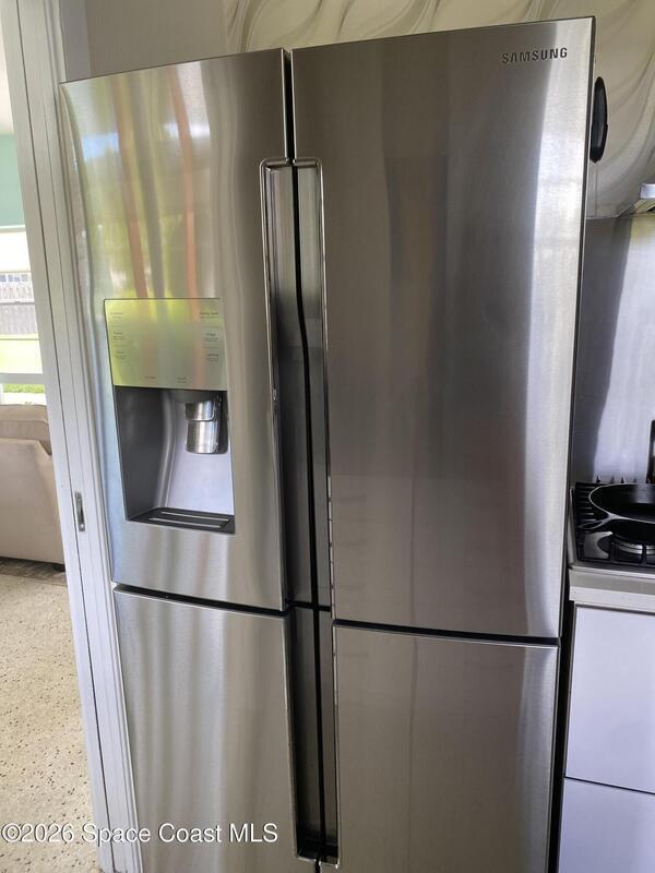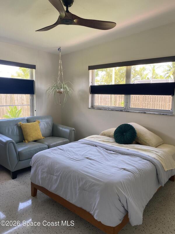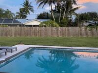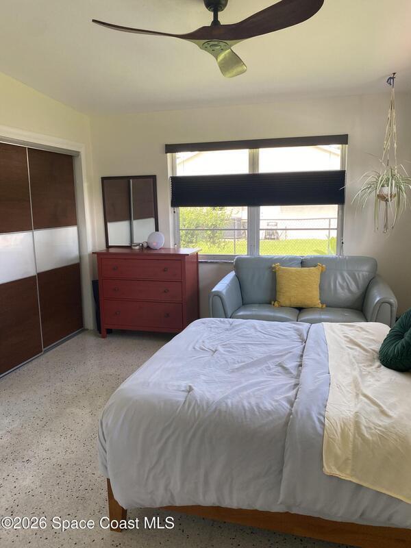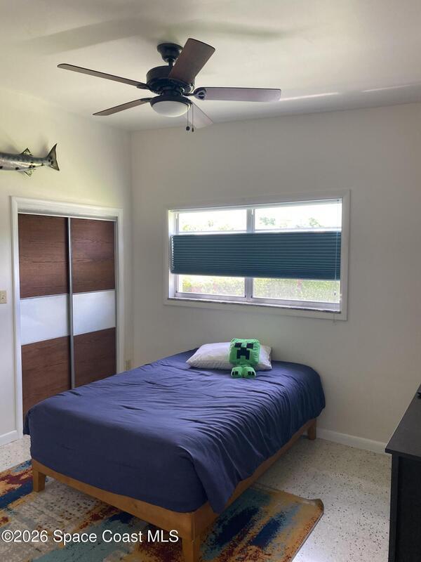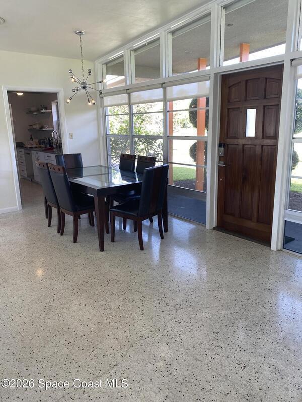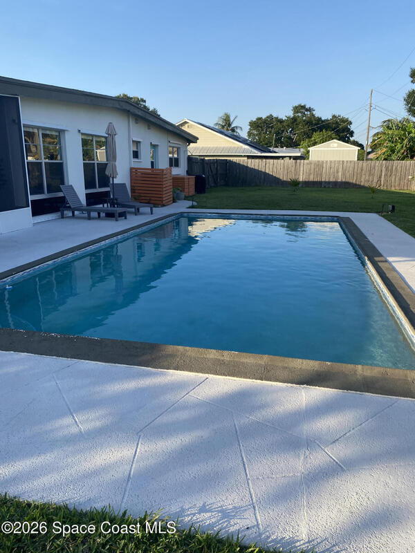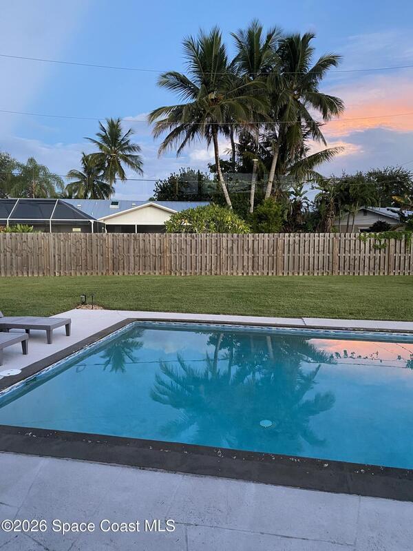 Mid-Century CBS modern home with 21st-century enhancements. No HOA, no restrictions. Desirable Vero Shores safe and friendly neighborhood, only five miles from the beach. Full hurricane protection includes shutters and custom hurricane garage doors.15X30 heated saltwater pool (2020heat pump, 2018energy-efficient V/S pool pump, 2024 saltwater system) Screened porch with ceiling fan overlooking large fenced backyard. Terrazzo floors throughout, renovated kitchen: gas range, SS appliances, custom cabinets, r/o filtration, pantry, laundry room. Features high ceilings-bright airy interiors. Electric updated:200amps/2020, insulated 2-car garage, 2018 Main H20 line repiped w/new shut-off valve. Located close to shopping, pharmacy, gas, and groceries. Rmsizeapprox.