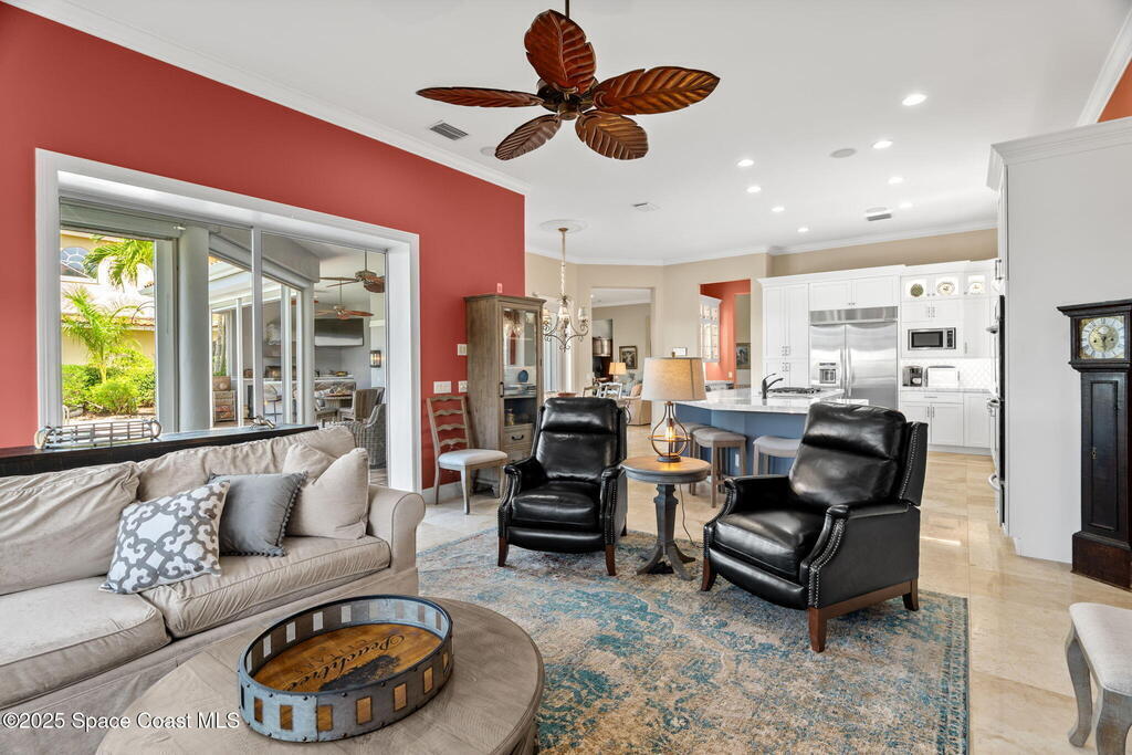 Located in desirable Grand Harbor Golf Club community. This waterfront estate offers 4BR/4.5BA, 3-car garage, with harbor, lagoon, & river views. Features include New 2023 roof, Newer A/C's, fresh exterior paint, renovated kitchen with large island, 4 renovated ensuite baths, new bedroom carpet, & dual primary suites (1 upstairs w/ balcony, 1 downstairs). All bedrooms have walk-in closets and ensuite bathrooms. Renovated summer kitchen and covered patio will roll down screens and shutters. 2 championship golf courses, racquet sports complex, & beach club. The Golf Club has availability for new memberships at this time!!