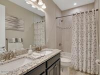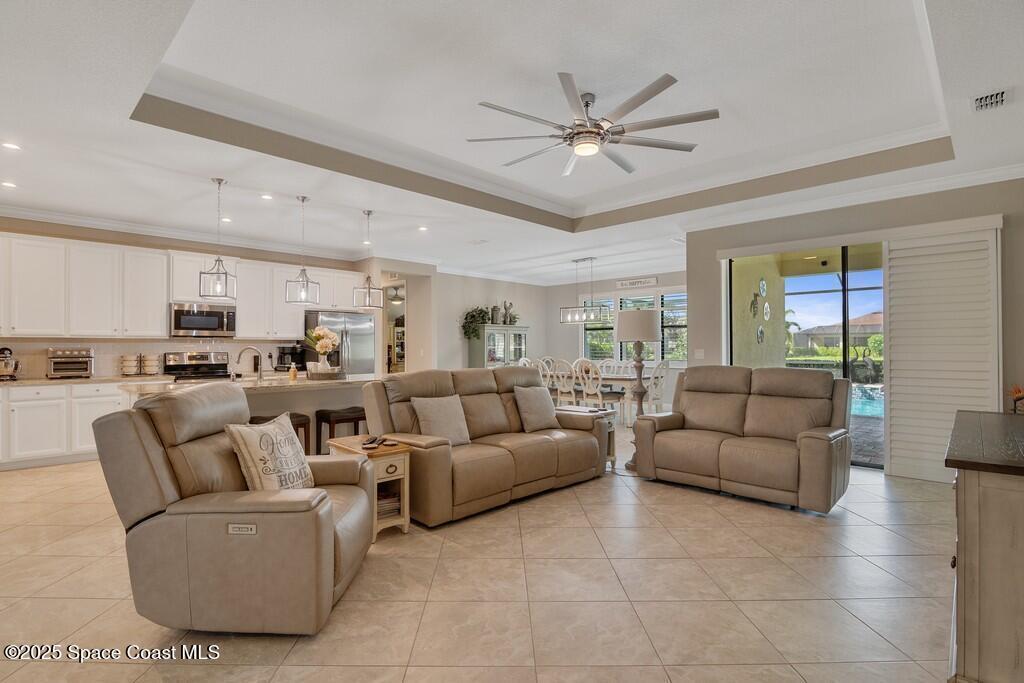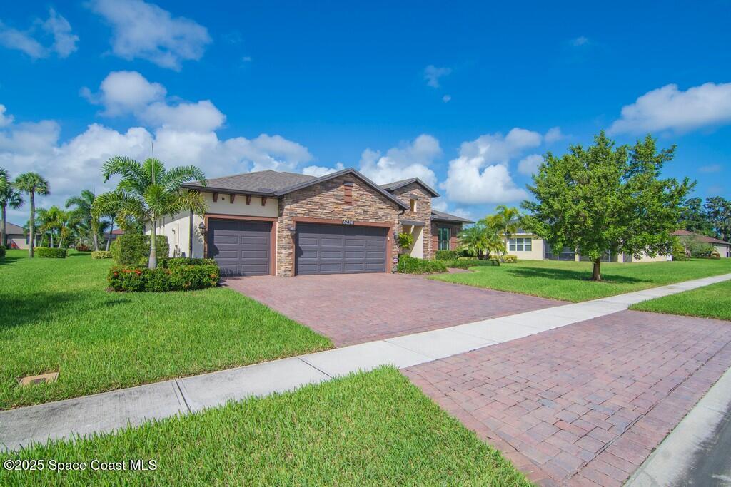 Beautiful 3-bedroom, 2.5-bath home with a 3-car garage. This house boasts with a lot of great upgrades like Plantation shutters, trey ceilings with accented crown molding, upgraded cabinets with crown molding, and tile flooring throughout. The upgraded showers are tiled up to the ceiling, adding a luxurious touch. Freshly painted and bright, the open kitchen invites culinary creativity and everyday living. Having the 3rd garage for that car enthusiast or just needing extra space is great to have. Enjoy those beautiful sunsets right from your swimming