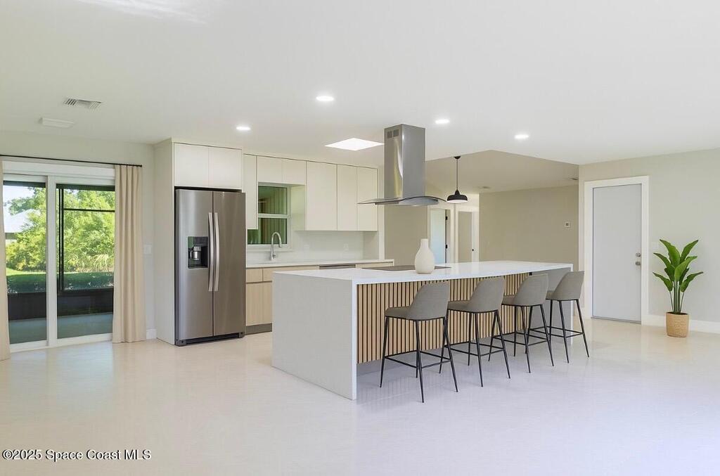 Beautifully updated Vero Beach home featuring a NEW ROOF, new water heater, and new IMPACT windows for lasting value. Step inside to a bright open floor plan with a modern kitchen showcasing quartz countertops and stainless-steel appliances. Enjoy indoor-outdoor living through French doors opening to a screened patio with tropical landscaping. The stylish bathroom offers a walk-in shower, plus a spacious two-car garage. Just appraised at $542, 000, this home delivers great value and move-in-ready comfort, minutes from beaches, shopping, and top schools.RMS & SZ SUB TO ERR
