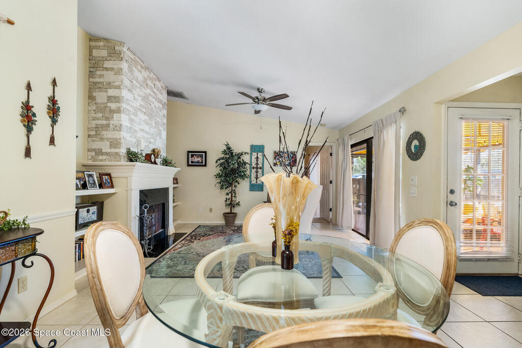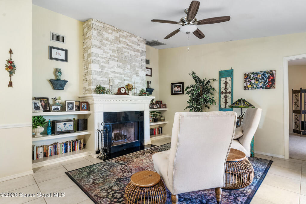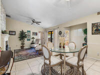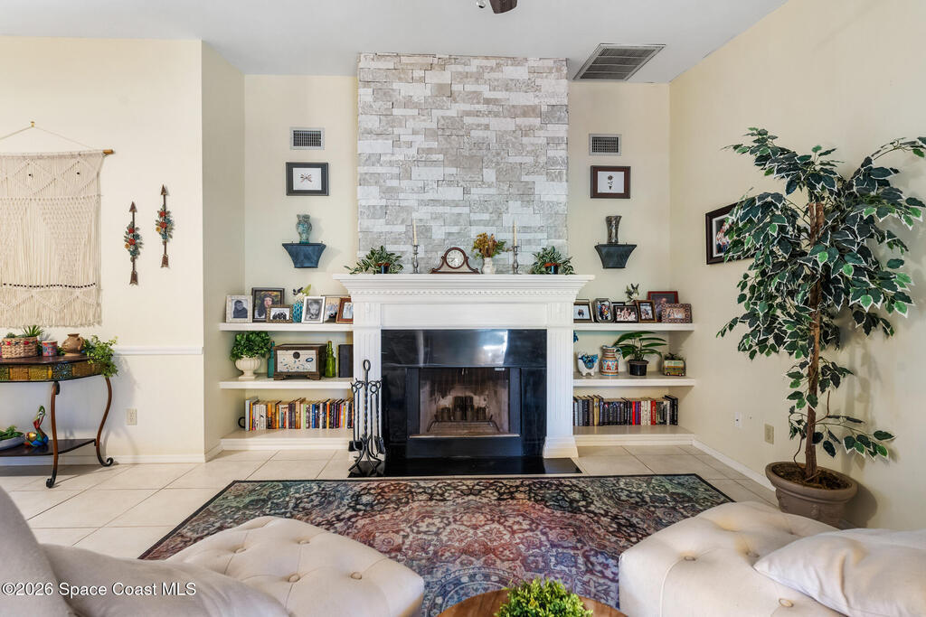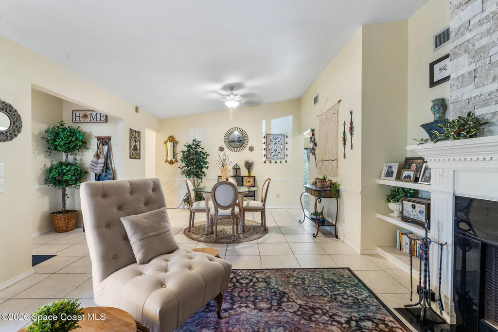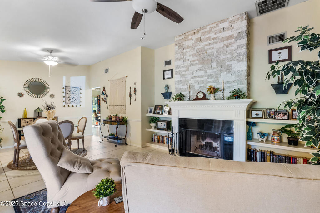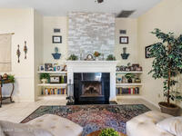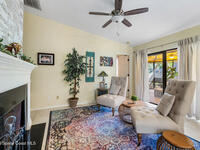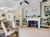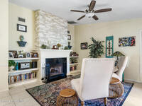 Proactive HOA painted exterior & fences, paved entrance, and re-piped unit. 2/2 Villa with a separate family room adding flexibility w/out sacrificing living space. Vaulted ceilings & built-in features enhance the main living area, anchored by a wood-burning fireplace adding warmth & character. The updated kitchen features quartz countertops, white shaker cabinetry, modern appliances, & a newer high-end refrigerator, creating a bright and functional space for everyday living.The bathrooms have been tastefully updated with accent wall details, while tile and carpet flooring, an indoor laundry room, and ample storage contribute to the home's comfort and practicality. Outdoor living is equally inviting with a large covered screened front porch, front and backyard irrigation, and a 1-car garage with additional assigned & guest parking.Major updates include a 2022 shingle roof, w/ exterior maintenance, home re-piped (2025) & roof replacement handled