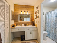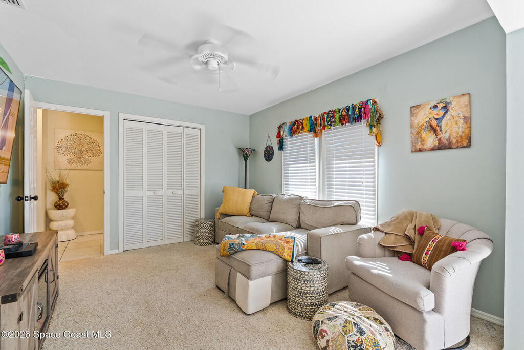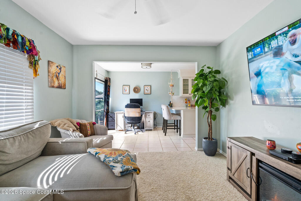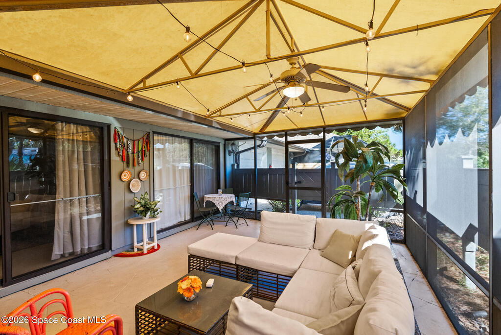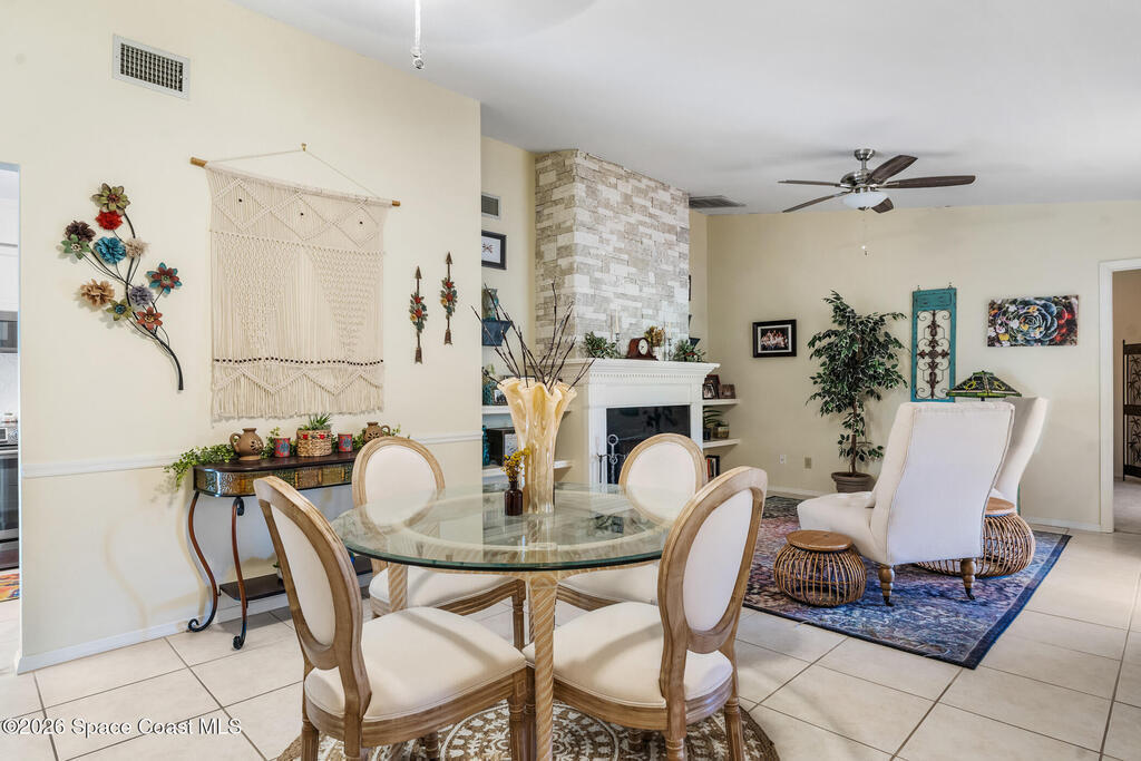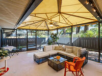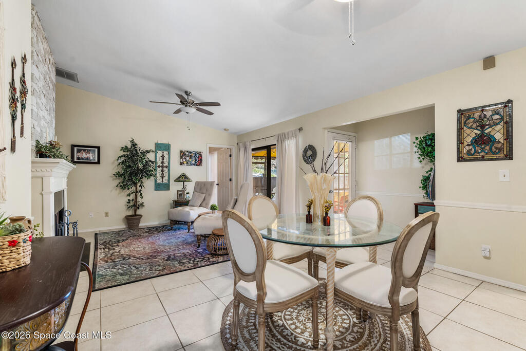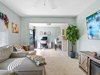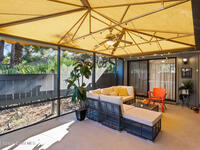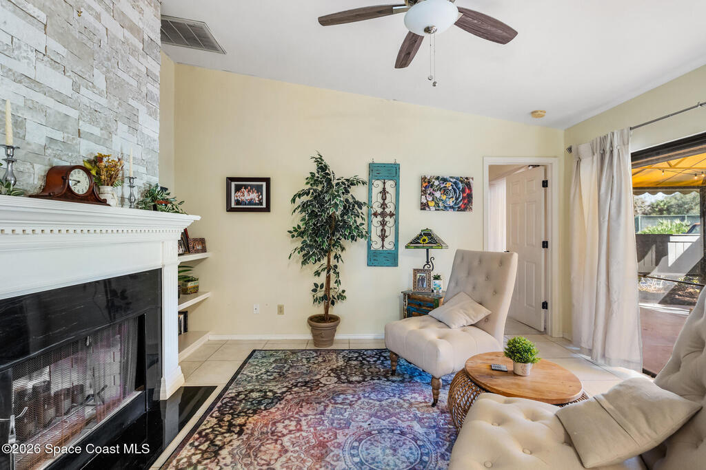 Proactive HOA painted exterior & fences, paved entrance, and re-piped unit. 2/2 Villa with a separate family room adding flexibility w/out sacrificing living space. Vaulted ceilings & built-in features enhance the main living area, anchored by a wood-burning fireplace adding warmth & character. The updated kitchen features quartz countertops, white shaker cabinetry, modern appliances, & a newer high-end refrigerator, creating a bright and functional space for everyday living.The bathrooms have been tastefully updated with accent wall details, while tile and carpet flooring, an indoor laundry room, and ample storage contribute to the home's comfort and practicality. Outdoor living is equally inviting with a large covered screened front porch, front and backyard irrigation, and a 1-car garage with additional assigned & guest parking.Major updates include a 2022 shingle roof, w/ exterior maintenance, home re-piped (2025) & roof replacement handled