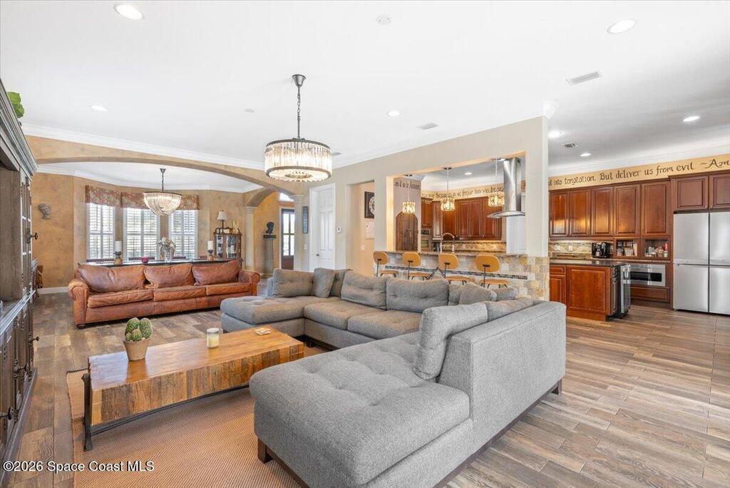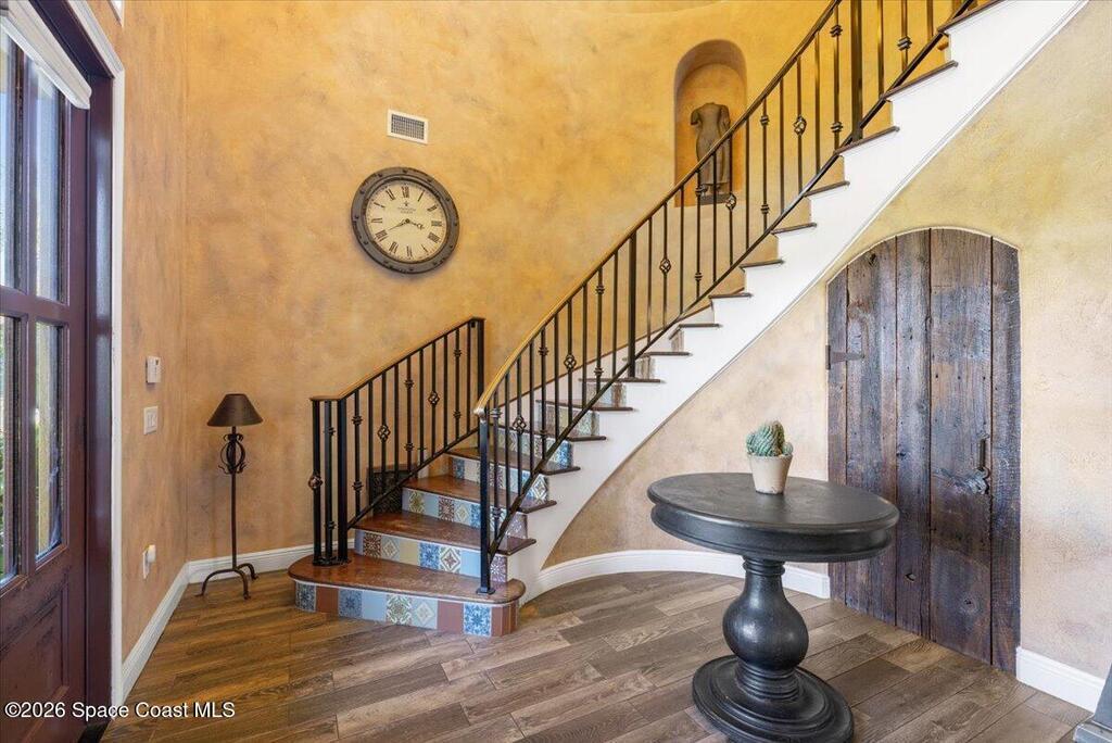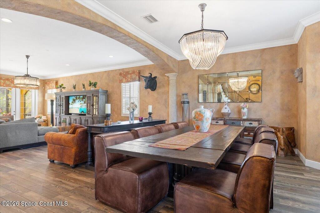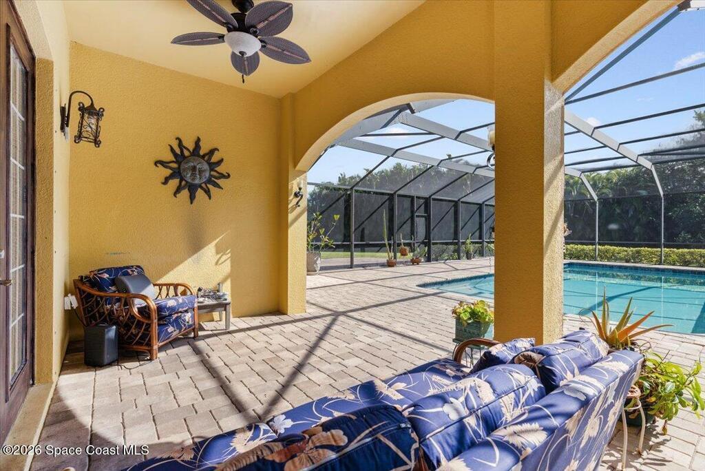 Stunning Mediterranean-style home in a gated Vero Beach community offering 3, 599 sq ft of move-in ready living space. This spacious 4-bedroom, 3.5-bath residence features a desirable primary suite on the main level and an expansive upstairs living area ideal for entertaining or flexible living. Situated on a large lot, the home showcases a huge screened pool and enclosure, creating a private outdoor retreat perfect for Florida living. Thoughtfully designed with generous living areas and classic architectural details, this home delivers space, style, and comfort in a secure, sought-after setting.