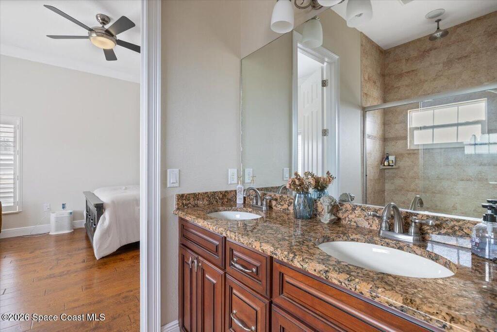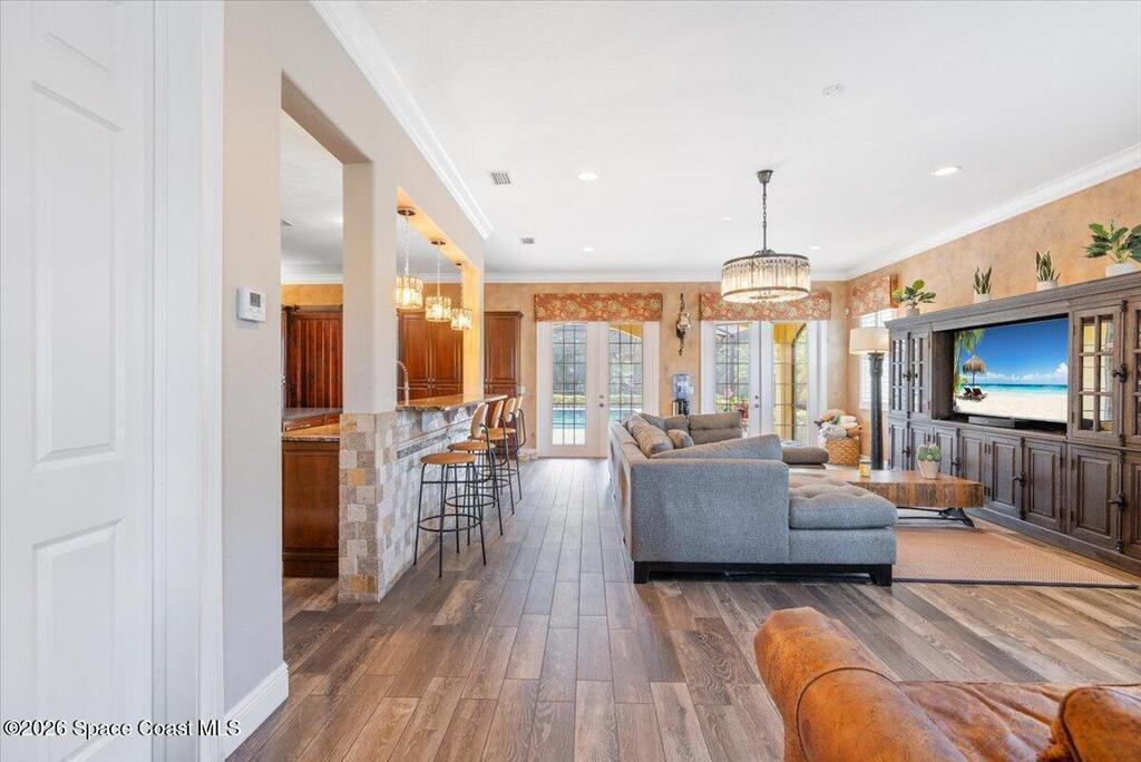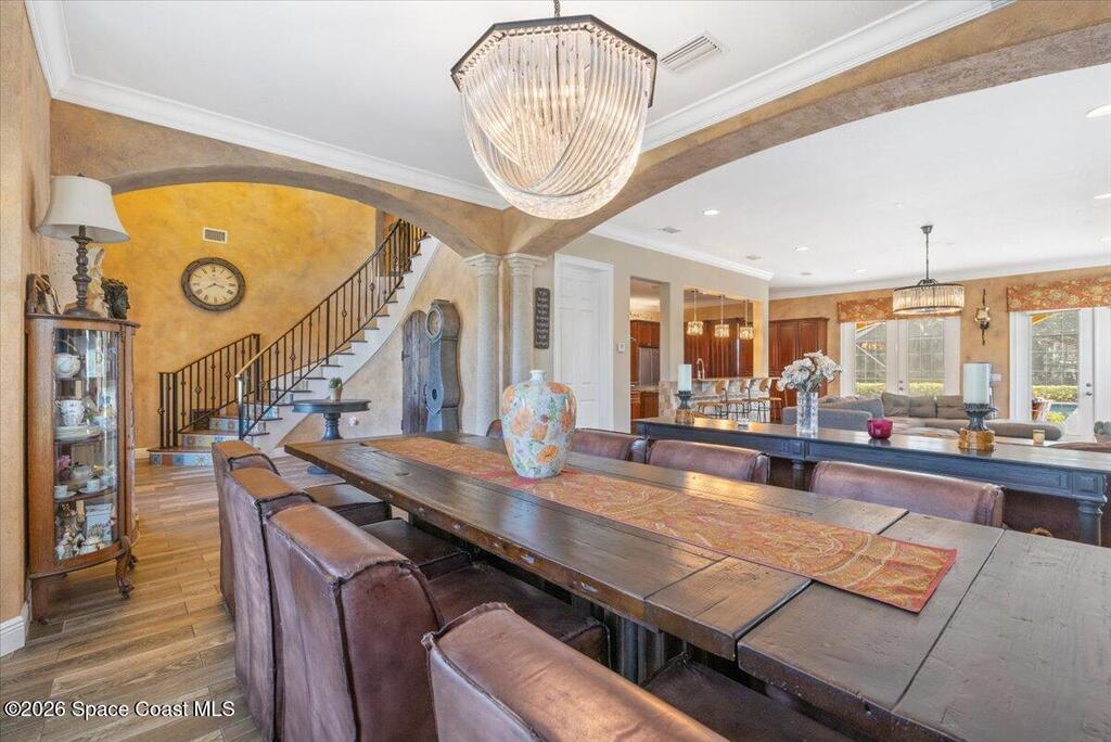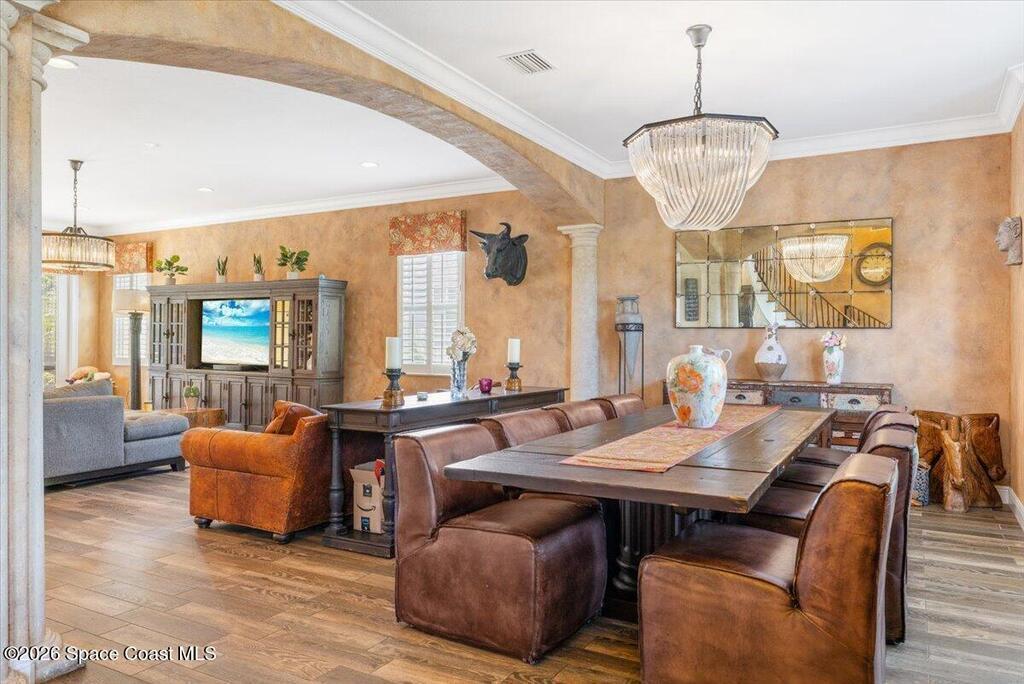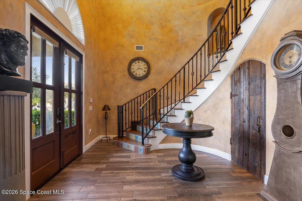 Stunning Mediterranean-style home in a gated Vero Beach community offering 3, 599 sq ft of move-in ready living space. This spacious 4-bedroom, 3.5-bath residence features a desirable primary suite on the main level and an expansive upstairs living area ideal for entertaining or flexible living. Situated on a large lot, the home showcases a huge screened pool and enclosure, creating a private outdoor retreat perfect for Florida living. Thoughtfully designed with generous living areas and classic architectural details, this home delivers space, style, and comfort in a secure, sought-after setting.