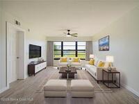 Scenic golf course views, completely remodeled. NEW: ceiling fans & light fixtures, interior doors, GE SS appliances, quartz countertops, white shaker cabinets, tiled showers & luxury vinyl flooring throughout. Enjoy your Florida quiet retreat or capitalize on as a high-demand rental in a vibrant 55+ community. Low-maintenance living w/ resort-style amenities, 2 heated pools, tennis, pickle ball & shuffleboard. Impact glass, assigned covered parking, washer & dryer included, offering comfort, convenience & an exceptional lifestyle. Great location !!! Beach is 15 minutes drive. Near shopping.