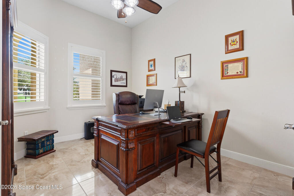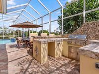 An exceptional 4BR, 3.5BA residence with a dedicated office/den, positioned on the first tee of Pointe West. Enjoy sweeping golf course views and a lake wrapping from the north to east side of the home. Designed for refined Florida living, it features tray ceilings, a spacious kitchen with double ovens, granite counters, and under-cabinet lighting. Highlights include natural gas, an outdoor grilling area with bar-top seating, pool and spa with waterfall feature, and a whole home generator--offering comfort, efficiency, and elevated everyday living.