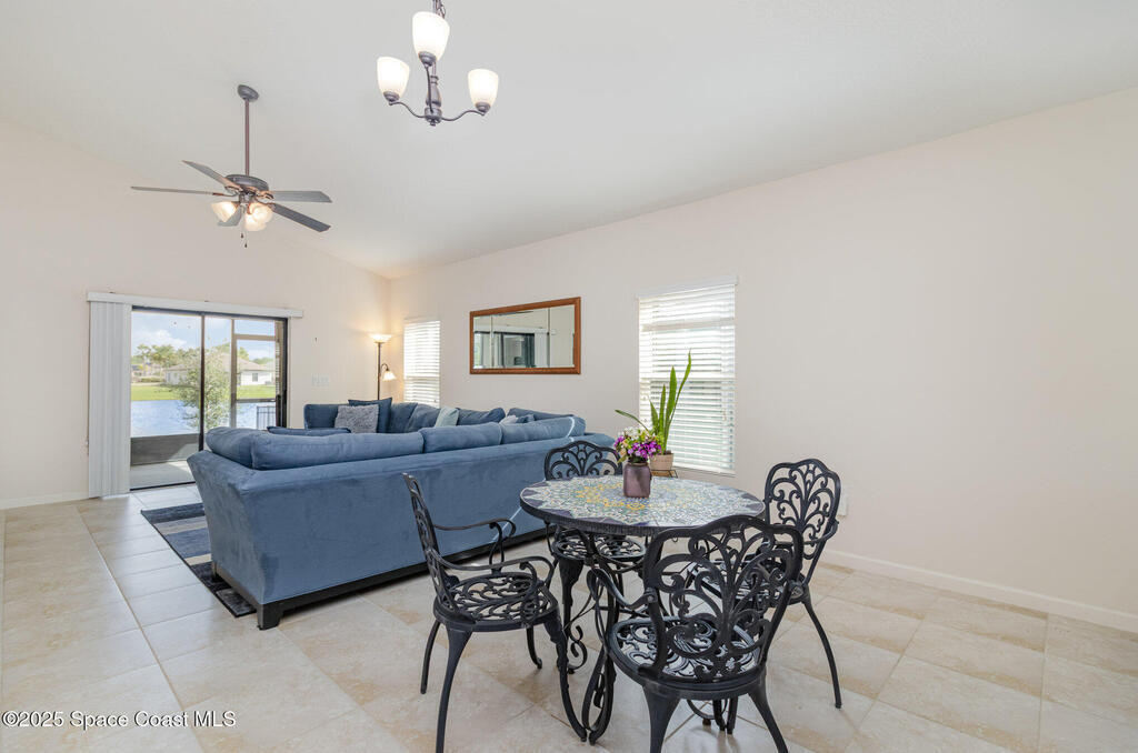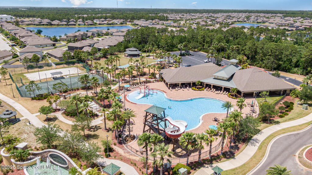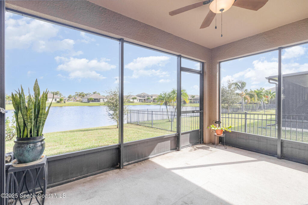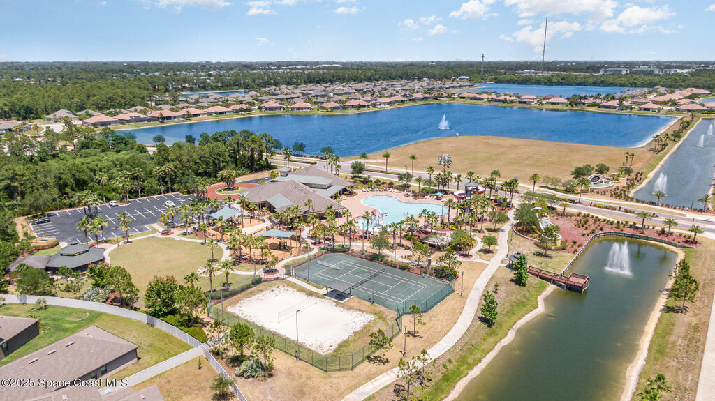 Welcome to the Wonderful World of one of the communities in Sawgrass Lakes - The Landings. This home acquired a new roof in 2024, new accordion aluminum shutters for all openings in 2020, and a new sprinkler pump for the sprinkler system in 2025. Lovely cathedral ceilings and views of the pond from most rooms. Pride of ownership shows in the pristine upkeep and maintenance throughout. These sub-communities are centrally located off main roads, close to leading technical and aerospace employers, big brand name stores just down the street, fantastic fine dining and quick service restaurants, near the Melbourne and Orlando International Airports, and major highways and interstates. Look no further if you are looking for an upscale gated community blended with a lifestyle immersed in natural beauty, sidewalks for walking and biking, and a resort style feel that is welcoming each time you come and go from anywhere in Sawgrass Lakes. There are many community amenities for everyone.