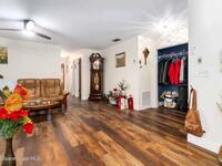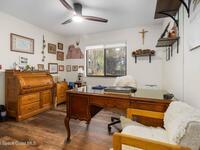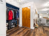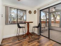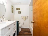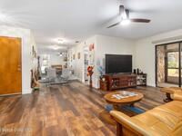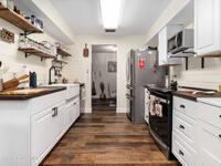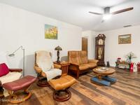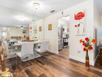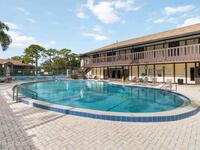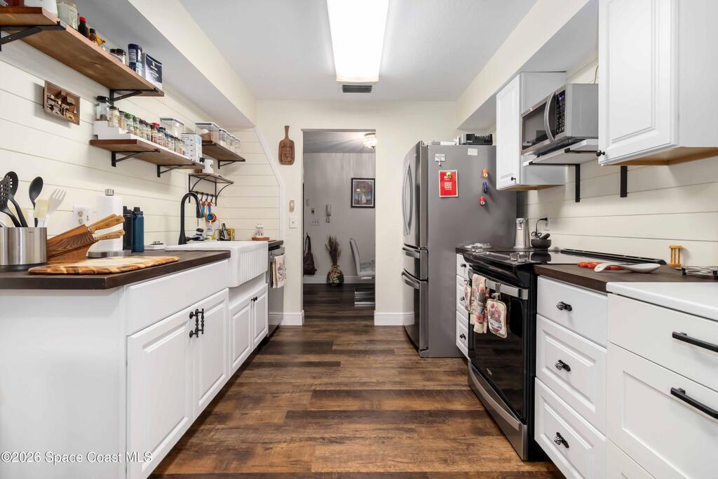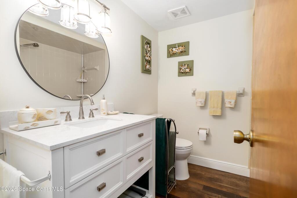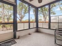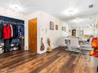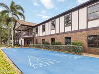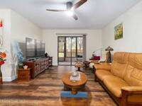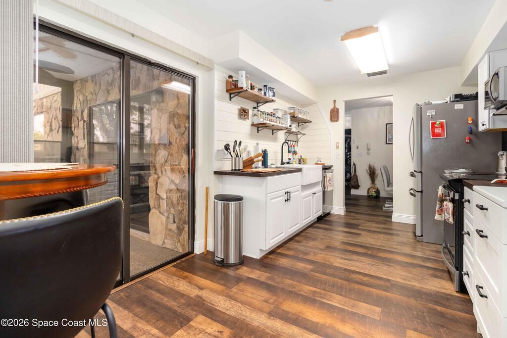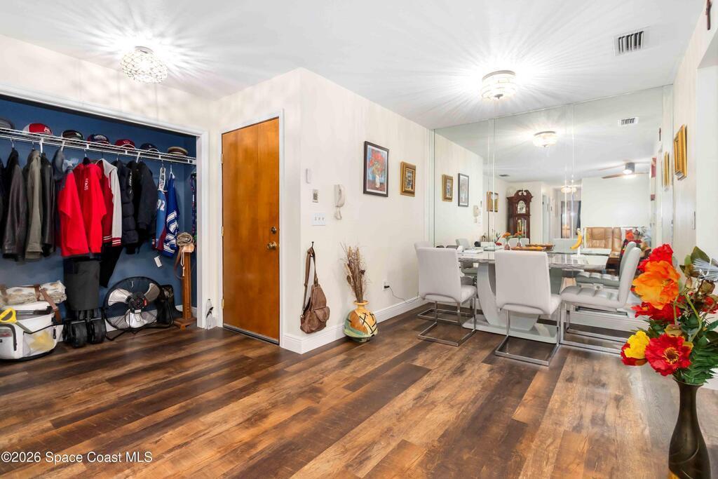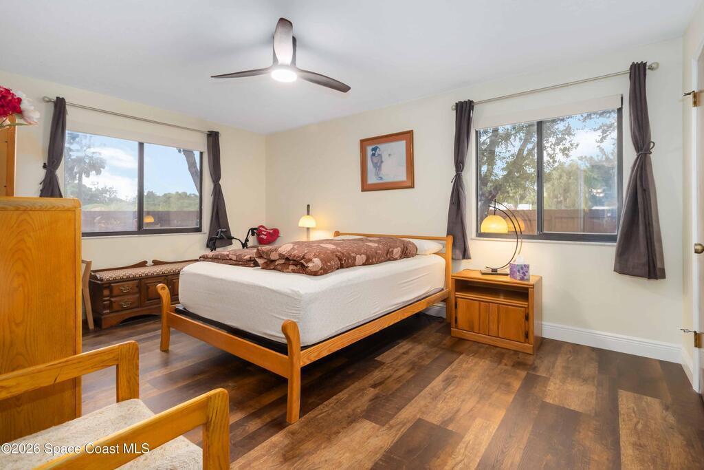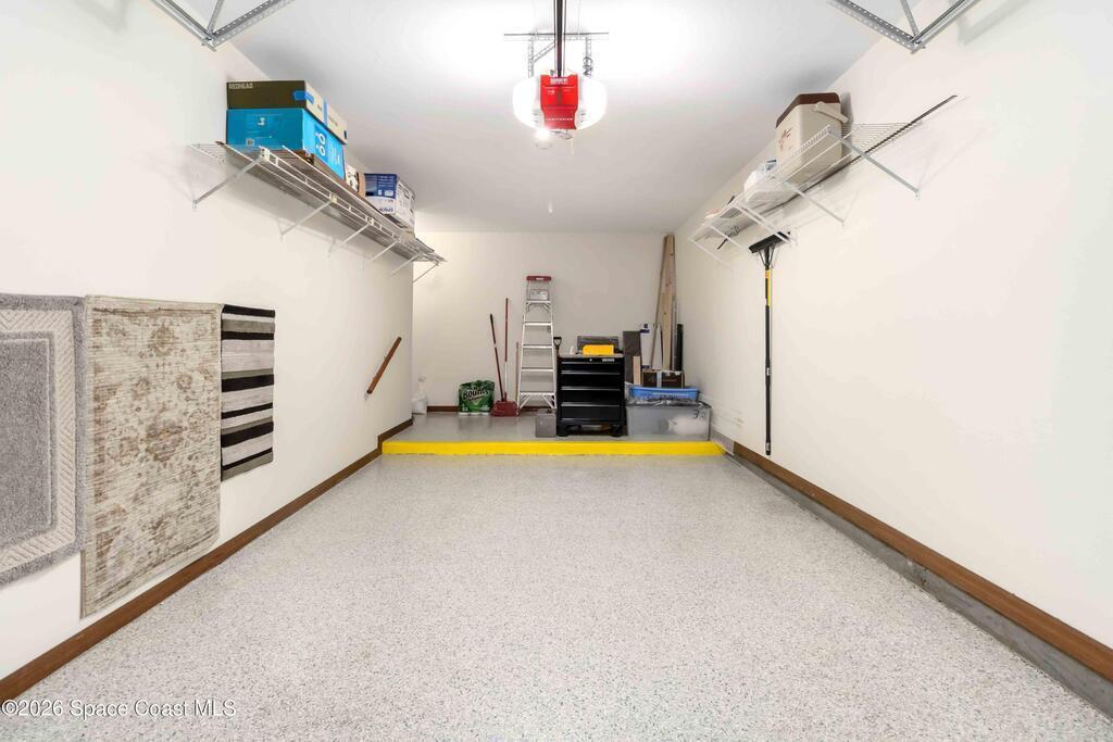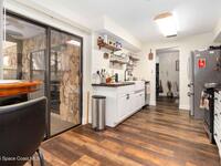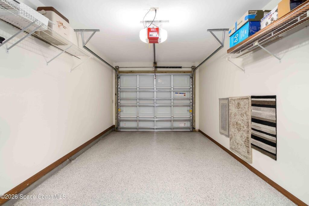 Updated ground floor 2-bedroom, 2-bath condominium with a private 1-car garage in a well-maintained, gated West Melbourne community with on-site management. This open floor plan features wood-look flooring throughout, fresh interior paint, and modernized appliances, including a new garbage disposal. The AC system was replaced in 2023, offering peace of mind and energy efficiency. The kitchen, dining, and living areas flow seamlessly and open to a fully screened lanai, accessible from both the living room and breakfast area through sliding glass doors. The patio floor has been freshly repainted, creating a clean and inviting outdoor retreat. Both bedrooms feature windows and updated fabric blinds. The primary suite offers a walk-in shower, walk-in closet, elevated commodes, and added safety features. A spacious indoor utility closet with washer and dryer adds everyday convenience. Additional highlights include four ceiling fans, updated guest bath fixtures, and thoughtful finishes
