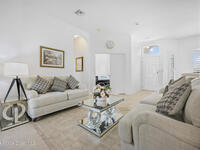 FULLY FURNISHED. Magnificent tropical paradise fully furnished executive custom home. Contemporary open floor plan with quality throughout with top notch craftmanship. Featuring 4 bedrooms, and 2 and 1/2 bathrooms overlooking tropical garden with fruit trees and frontage view overlooking length of entire lake. Extremely clean and well-maintained in a very small and private gated community of only 54 homes. Centrally located and nesting in the heart of highly sought after neighborhood in the city of West Melbourne, closed to Grumman, Harris, A schools, shopping, freeway, 15 minutes to beach and river.