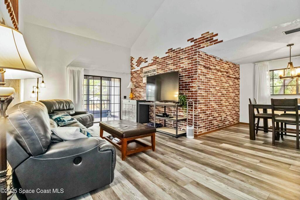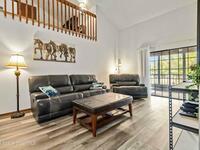 This stunning 4 Bedroom, 3 Bath, 1 Car Garage waterfront condo is located in a highly sought-after West Melbourne neighborhood. The open floor plan w/over 2000 sq ft boasts newer luxury plank vinyl, a large great room w/vault ceilings, sep dining area & a spacious loft, perfect for additional living space or a home office. Enjoy modern living with stainless steel appliances in the eat-in kitchen. Downstairs is a large master bedroom & updated bath, plus two bedrooms & guest bath. Indoor laundry with convenient all-in one washer/dryer. The screened balcony overlooks a serene pond, providing a tranquil setting. Upstairs features a large loft, storage, & a bedroom w/bath for extra privacy. New roof in 2024. Residents have access to community amenities inc clubhouse, fitness room, pool tables, pool & a car wash station. Assoc. fees incl lawn & building maintenance, trash, high speed internet, cable, roof, pest control, pool, & ext insurance. Don't miss out on this opportunity